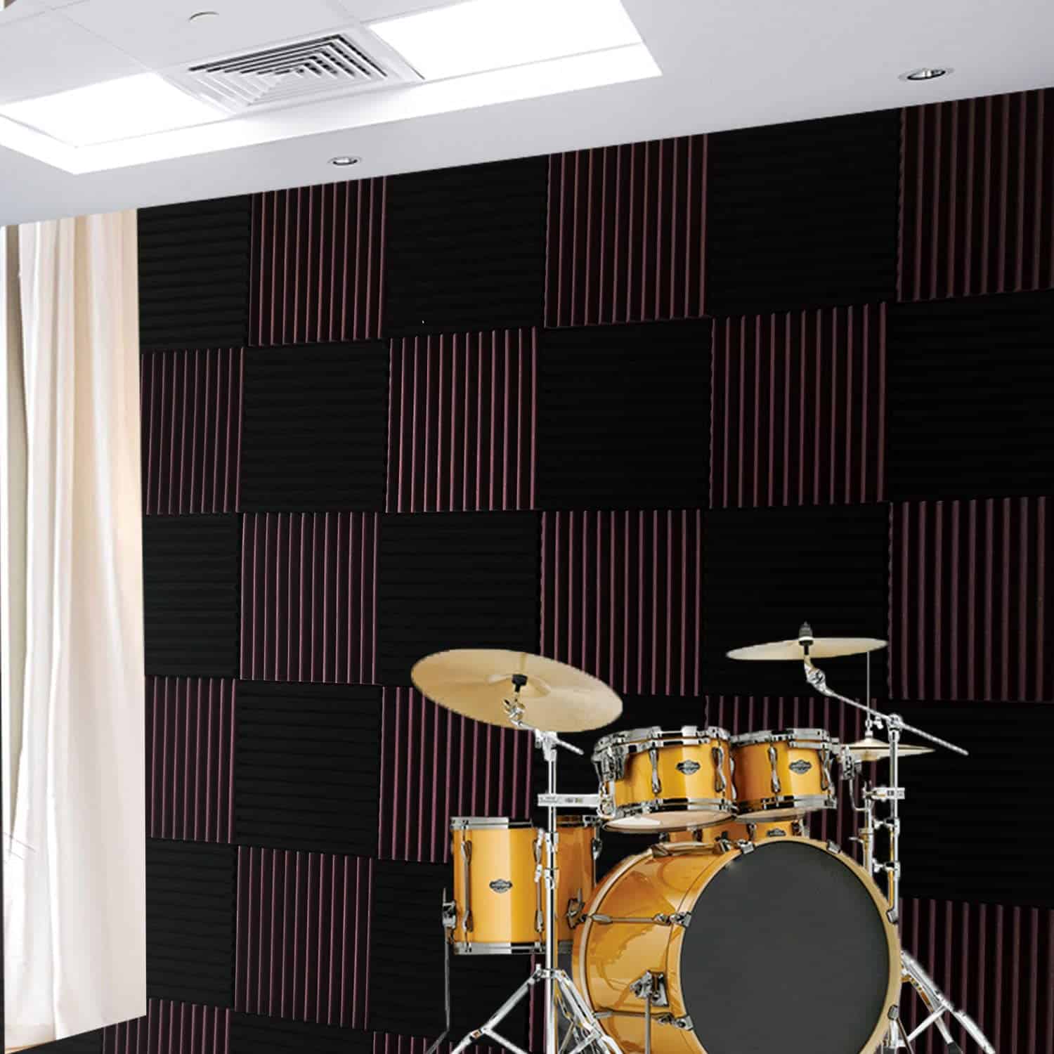 52 Pack Paneles de Espuma Acústica Negro/Borgoña 12″ X