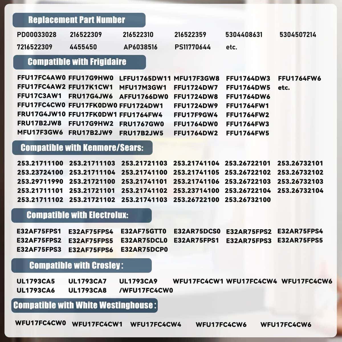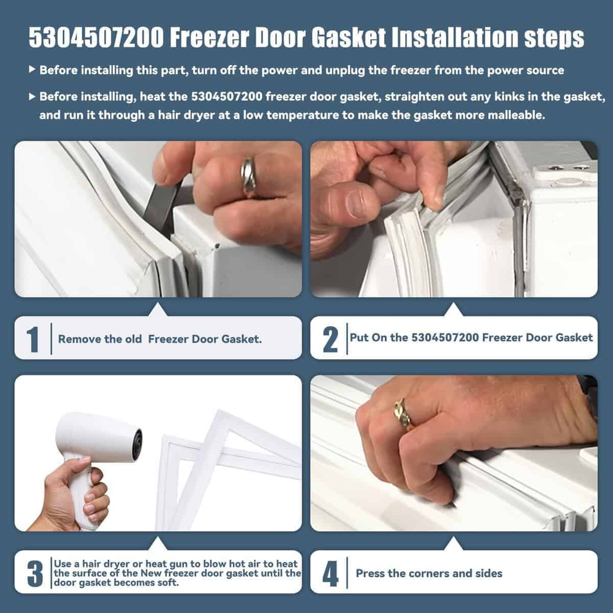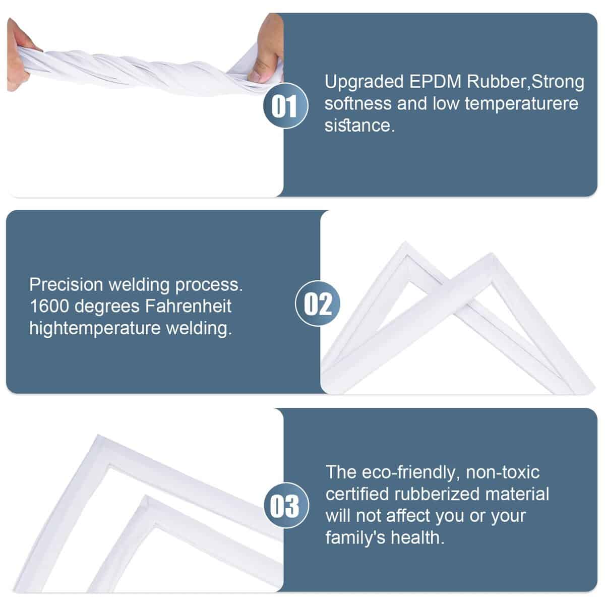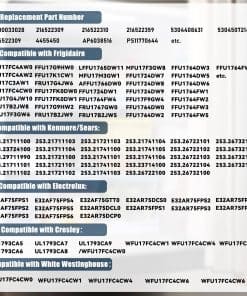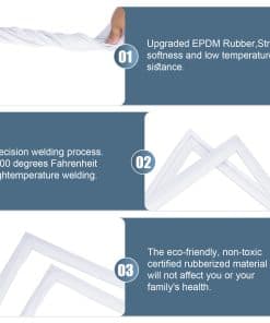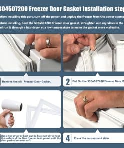 5304507200 Junta de Puerta del Congelador Refrigerador Puerta de Horno de microondas de accesorios. Junta de la puerta del congelador Sello de la junta de la puerta del congelador 5304507200 Especificaciones de la junta de la puerta del congelador 5304507200. Compatible con Electrolux Kenmore Frigidaire Crosley Gibson Kelvinator Tappan White-Westinghouse Reemplaza las piezas de los modelos: PD00033028, 216522309, 216522310, 216522359, 5304408631, 5304507214, 7216522309, 4455450 AP6038516 PS11770644 EAP11770644. También puedes usar: «ctrl+F» para buscar tu modelo de producto en esta página. Series Compatibles FFU1724DW7 FFU1724DW8 FFU1724DW9 FFU17F9GW4 FFU1764DW0 FRU17G4JW9 GFU17F7GW2 GFU17M4GW0 FFU1724DW6 LFFH1767DW0 LFFH1767DW2 LFFU1765DW0 LFFU1765DW3 MFU17M3GW0 AFFU1766DW1 AFFU1766DW2 AFFU1766DW3 FRU17G4JW22 FRU17G4JW23 FRU17G4JW24 FRU17G4JW25 FRU17G4JW3 FRU17G4JW5 FRU17G4JW7 FRU17G4JW8 GFU17D5GW0 GFU17F7GW0 FFU17F5HWJ FFU17F5HWK FFU17F5HWL FFU17F5HWM FFU17F5HWN FFU17F5HWP FFU17F5HWR FFU17F5HWS FFU17F5HWT FFU17F5HWU FFU17F9GW2 etc. Series Compatibles 2 FKCH17F7HWB FKCH17F7HWC FKCH17F7HWD FKCH17F7HWE FKCH17F7HWF FRU1767GW1 FRU1767GW2 FRU17B2JW1 FRU17B2JW10 FRU17B2JW11 LFFH17F7HWC LFFH17F7HWD LFFH17F7HWE LFFH17F7HWG LFFH17F7HWH LFFU1765DW1 LFFU1765DW12 253.21711100 253.23724100 253.29711990 253.21711101 253.21711102 253.21711103 253.21711104 253.21721100 253.21721101 E32AF75FPS1 E32AF75FPS2 E32AF75FPS3 E32AF75FPS4 UL1793CA5 UL1793CA6 UL1793CA7 UL1793CA8 UL1793CA9 etc. Goma de EPDM Mejorada Nuestra junta de puerta de refrigerador mejorada está hecha de goma EPDM de alta calidad y está probada para que dure. Alta elasticidad y flexibilidad, puede volver rápidamente a su estado original después de la deformación y resistencia al desgarro. Se puede lograr un sellado efectivo. Fácil de Instalar Asegúrate de que la ranura y su área circundante estén secas y limpias antes de instalar la unidad, y luego apaga la energía. Baja hasta la esquina inferior. Luego, quita la puerta del congelador, afloja los tornillos del revestimiento interior de la puerta y saca la junta antigua. Necesitamos usar un secador de pelo o una pistola de calor para soplar aire caliente para calentar la superficie de la junta de la puerta del congelador hasta que la junta de la puerta se vuelva suave. Luego coloca uniformemente la nueva junta en el borde del revestimiento interior de la puerta. Asegúralo firmemente con la mano. Aprieta todos los tornillos y reinstala la puerta del congelador.