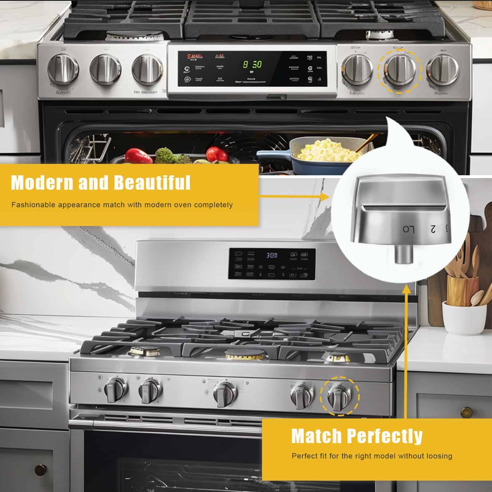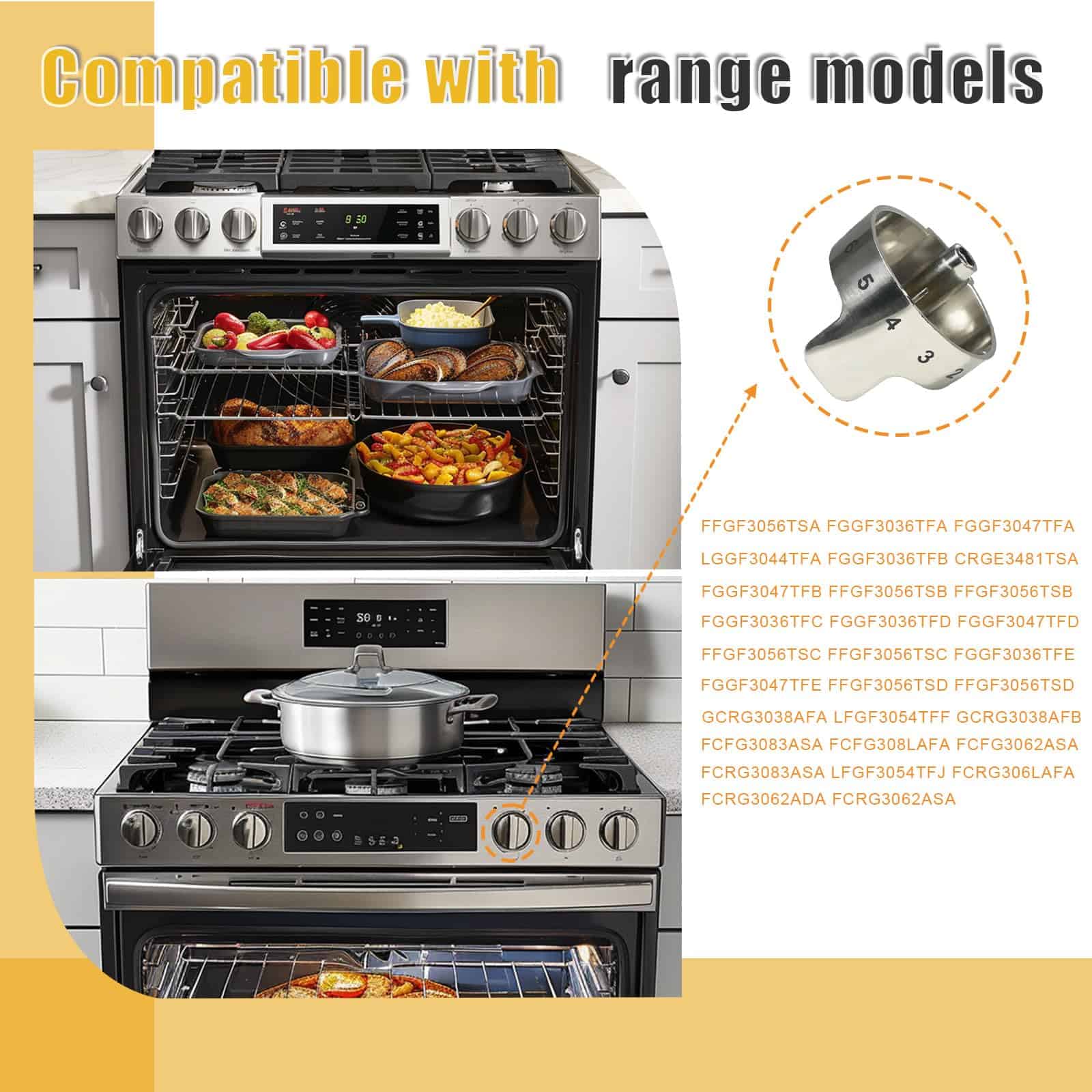 Este juego de 5 perillas de repuesto de calidad premium está diseñado para ser compatible con los modelos de cocina de gas Frigidaire CRGE3481TSA, FFGF3056TSB, FFGF3056TSC. Fabricadas con material duradero y resistente, estas perillas garantizan un reemplazo seguro y eficiente. ¡Adquiere las tuyas hoy y vuelve a disfrutar de tu cocina como nueva!