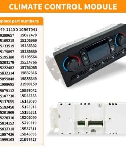 Mantenga el sistema de control de clima de su vehículo funcionando de manera óptima con este Módulo de Control de Clima 599-211XD. Compatible con una amplia gama de modelos de Chevy, GMC, Hummer, Buick, Cadillac y Oldsmobile del 2002 al 2009, este módulo ayuda a regular la temperatura, el flujo de aire y otras funciones relacionadas con el clima en su vehículo. Diseñado como un reemplazo directo del equipo original, garantiza un ajuste perfecto y un rendimiento confiable. Con su construcción duradera y su ingeniería precisa, este módulo de control de clima está hecho para resistir las rigurosidades de la conducción diaria mientras ofrece comodidad y conveniencia consistentes. Ya sea que esté luchando contra el calor abrasador del verano o el frío helado del invierno, este módulo ayuda a mantener la temperatura de la cabina deseada, asegurando una experiencia de conducción agradable sin importar las condiciones climáticas. No comprometa el sistema de control de clima de su vehículo, reemplace un módulo defectuoso con esta parte de alta calidad y compatible con OE para un rendimiento óptimo y comodidad.