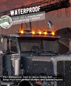 Universal para camiones, remolques, tractores, semirremolques, camiones volquete, autobús, barco, vehículo especial, etc. Para camiones pesados como Kenworth Peterbilt Freightliner Western Star International Mack Paccar y otras luces de camión. Resistente a impactos y menos susceptible a daños por golpes. Cada LED está cableado directamente y sellado herméticamente al agua. FÁCIL DE INSTALAR: simplemente retire sus luces de cabina de fábrica y atornille estas en su lugar. Hardware necesario, el blanco es el negativo y el negro es positivo.