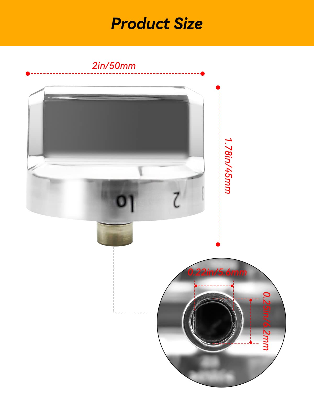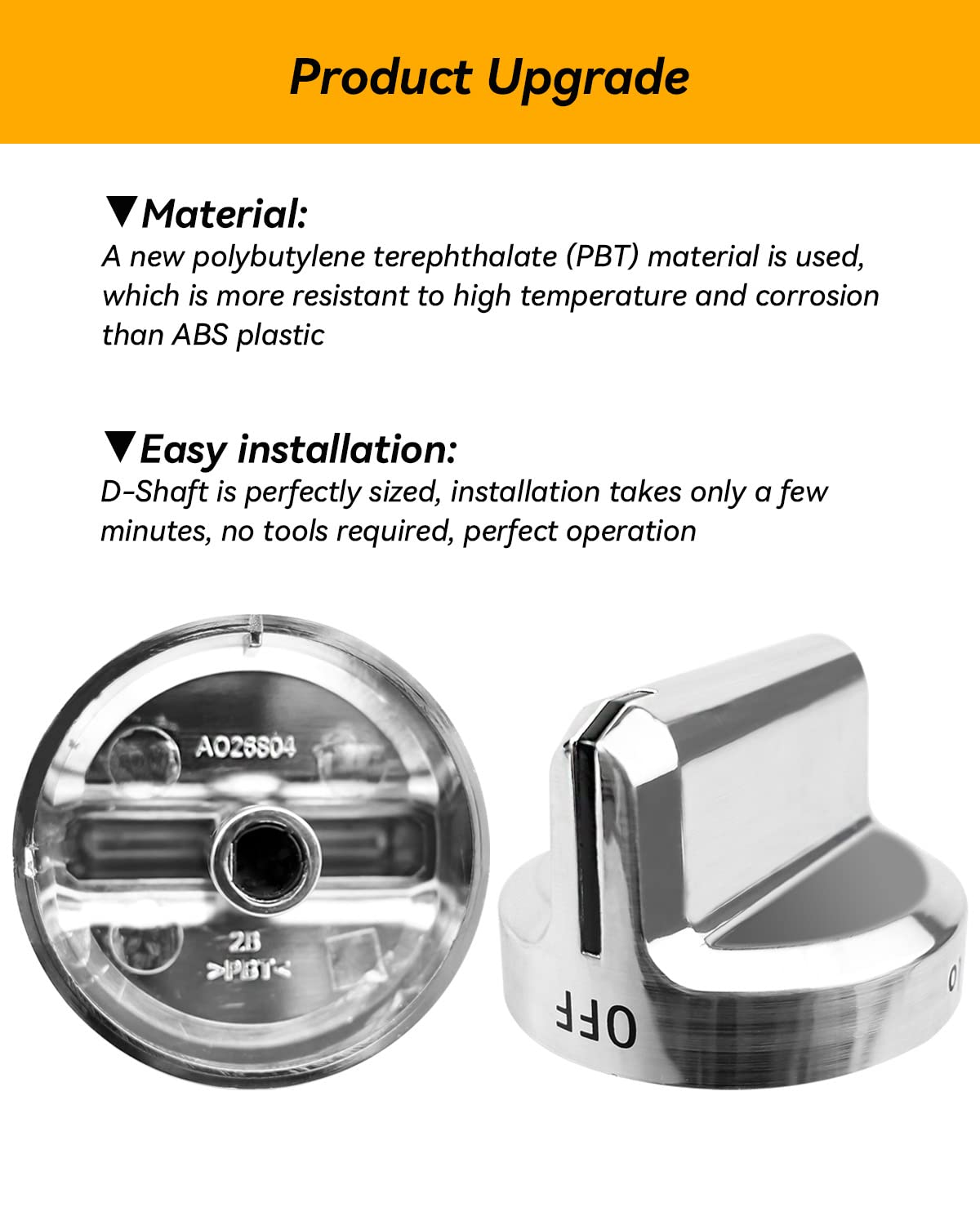 Parámetros del Producto: Color del Producto: Plata Tipo de mango: Perilla Forma: Redonda Material: PBT Diámetro del Agujero de Montaje en Forma de D: 0.25″ (6.2 mm) de largo, 0.22″ (5.6 mm) de ancho Modelos Compatibles: Compatible con modelos de estufas de la serie Frigidaire DGGF3046RFA DGGF3046RFB DGGF3046RFC FGGF3035RFA FGGF3035RFB FGGF3035RFC FGGF3035RFD FGGF3045RFA FGGF3045RFB FGGF3045RFC FGGF3045RFD Número de Pieza de Repuesto: Reemplaza a AP5984069 PS11724147 5304502763 Por Qué Elegirnos Calidad Superior: Hecho de material de PBT de alta calidad, alta dureza, resistencia a altas temperaturas y ligereza Tratamiento con Proceso Especial: Se trata con un proceso de cromado para prevenir la corrosión y el óxido, haciéndolo más hermoso Instalación Sencilla: Solo retire la perilla antigua de la estufa e instale el nuevo producto. Puede completarse fácilmente en más de diez minutos Contenido del Paquete: 5 x Perilla de Estufa de Gas Servicio Postventa: Si tiene problemas o dudas antes de la compra o durante el uso, no dude en contactarnos y resolveremos el problema de manera perfecta para usted
