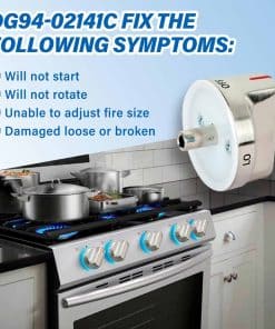 4. Alta calidad: El modelo DG94-02141C está diseñado para cumplir con estándares de alta calidad, ofreciendo durabilidad y fiabilidad para el horno de gas. Fabricada con materiales duraderos y diseñada para ser compatible, esta perilla garantiza un funcionamiento suave y ajustes de temperatura precisos mientras cocina. Permite a los usuarios controlar y ajustar los quemadores con facilidad y precisión, y está construida para garantizar un rendimiento óptimo y seguridad durante las actividades de cocina.