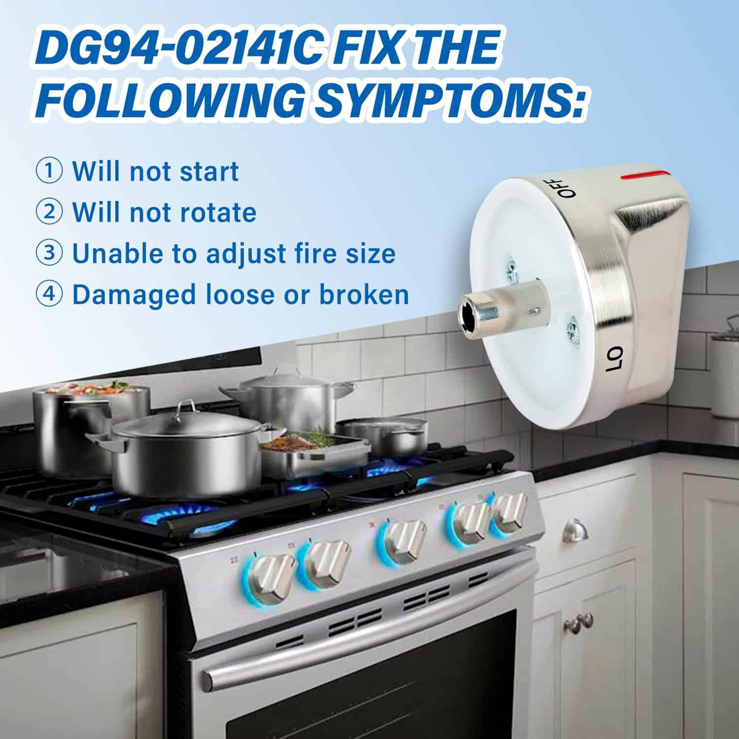 3. Compatible con: La perilla de quemador de rango DG94-02141C es compatible con el horno de gas de Samsung para los modelos NX58R6631ST/AA, NX58R6631SS/AA.