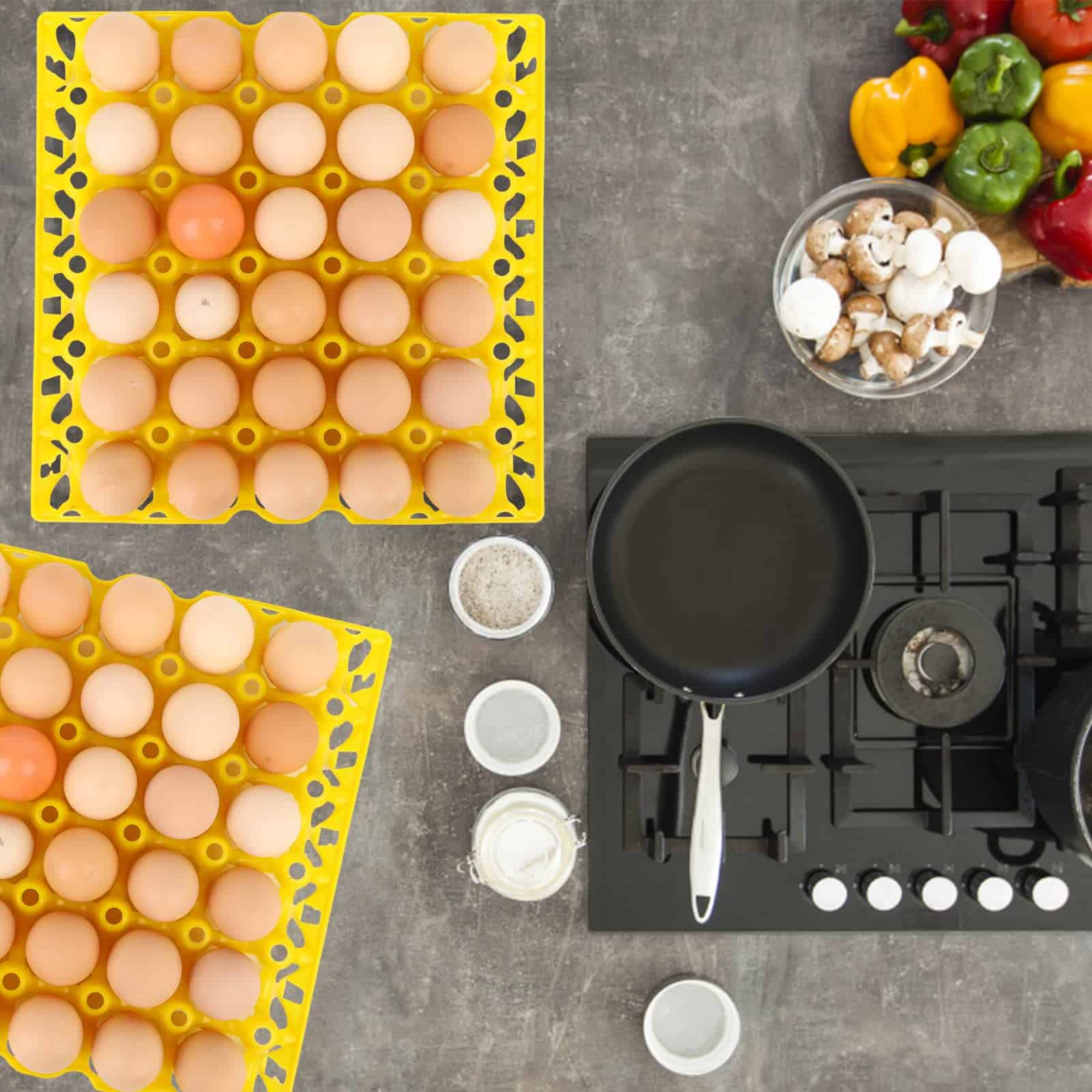 Especificaciones Nombre: Bandejas de Plástico para Huevos Material: Plástico Tamaño: 11.81 x 11.81 x 2 pulgadas Color: amarillo Contenido del paquete 6 Pack Bandejas de Plástico para Huevos(amarillo) Escenario de Aplicación Cartones de huevos de plástico adecuados para el almacenamiento y transporte de huevos para granjeros de pollos Nota Dado que las dimensiones anteriores se miden de forma manual, el tamaño real del artículo que recibas puede ser ligeramente diferente a las dimensiones anteriores