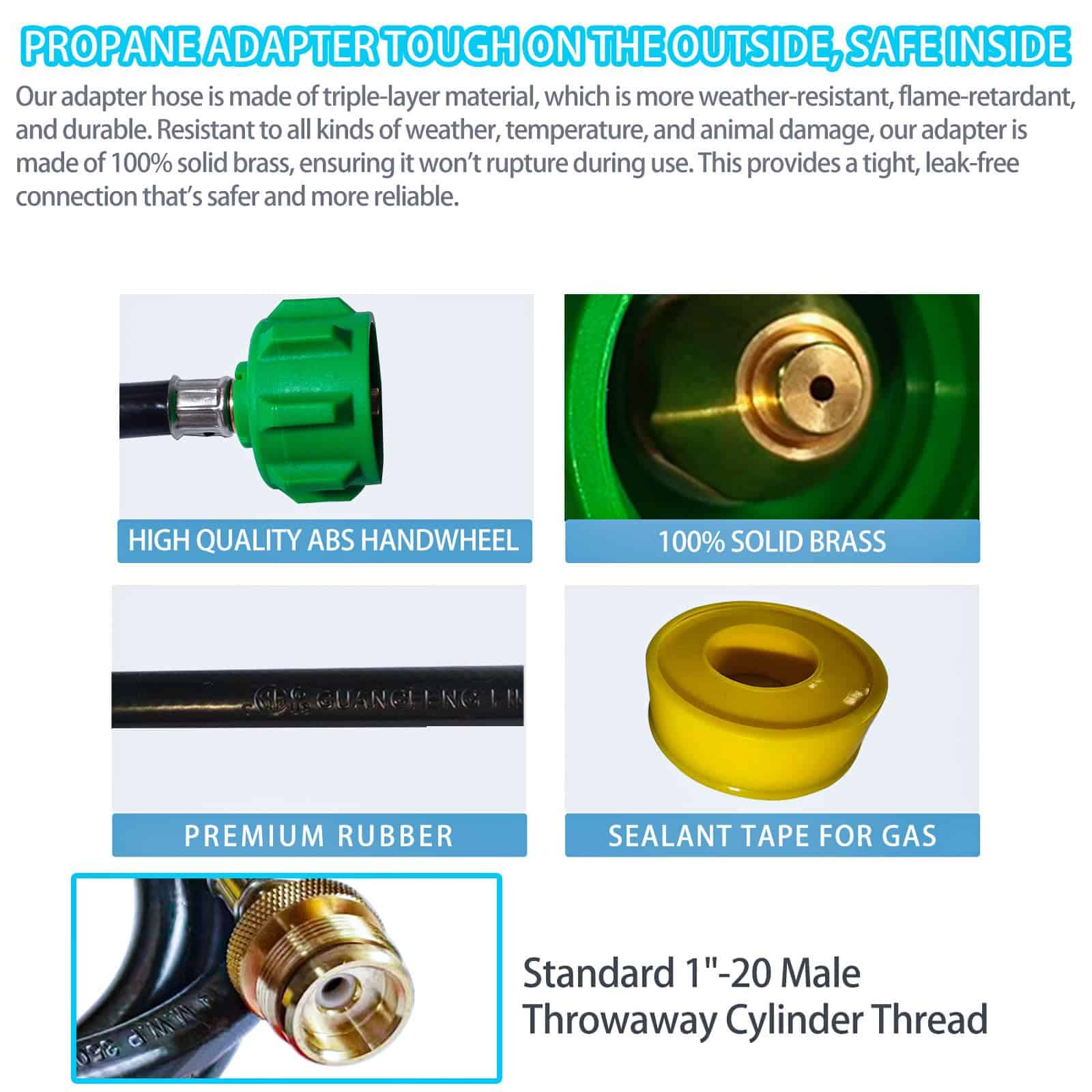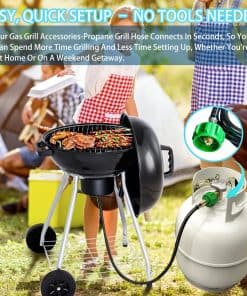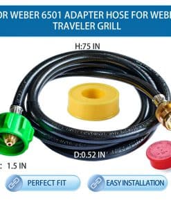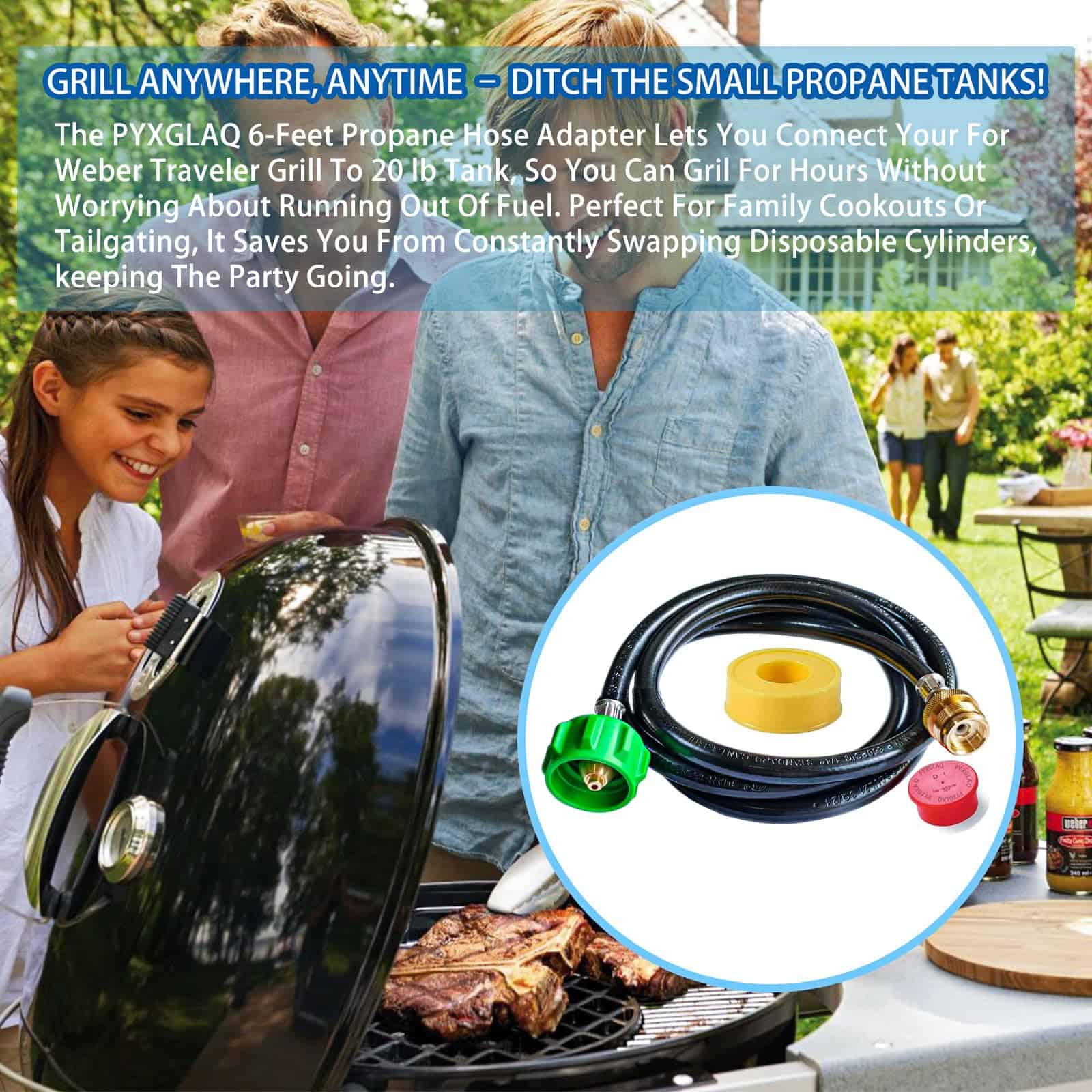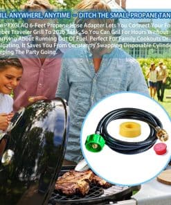 Para la Parrilla de Viaje Weber – Conecta fácilmente tu parrilla portátil a un tanque de propano de 1 lb o 20 lb con nuestra manguera adaptadora de propano de 6 pies perfecta para parrilladas para grupos grandes. No más lidiar con cilindros pequeños o quedarse sin combustible. Presenta una rueda manual con roscas giratorias QCC externas, la manguera de parrilla de propano PYXGLAQ hace que la configuración sea fácil. Certificado por CSA para una seguridad y estabilidad herméticas, para que puedas hacer una parrillada con confianza. ¡Disfruta de una parrillada libre de problemas y duradera cada vez! Accesorios para la Parrilla de Viaje Weber Compatibles – Para las parrillas de gas Weber Q series, Go-Anywhere y Traveler junto con los modelos Summit Charcoal, Summit Kamado S6, y algunos modelos Performer seleccionados. Incluyendo: para weber q, para weber q1000, para weber traveler para los accesorios de parrilla weber q1200 para weber q2200 para los accesorios de parrilla weber, para la parrilla weber q, para la parrilla de viaje weber go anywhere para weber q1200 para piezas de parrilla de weber accesorios de parrilla de gas, parrillas portátiles char-broil, para parrillas weber q, calentadores buddy y más. Adaptador de Propano Resistente en el Exterior, Seguro en el Interior – Nuestra manguera adaptadora está hecha de material de tres capas, que es más resistente a la intemperie, retardante de llama y duradero. Resistente a todo tipo de clima, temperatura y daño animal, nuestra manguera es de latón sólido al 100%, asegurando que no se romperá durante el uso. Esto proporciona una conexión apretada y libre de fugas que es más segura y confiable. Nuestra manguera adaptadora de propano es el compañero perfecto para la parrilla de campamento Weber. Manguera Adaptadora de Propano – Haz una parrilla como un profesional con un tanque de tamaño completo: Conecta la parrilla portátil a un tanque de combustible de 20 lb para una mayor versatilidad con tu parrilla portátil, Lleva tu juego de parrilla al siguiente nivel. Nuestra manguera adaptadora de propano te permite cocinar más comida para más personas sin quedarte sin combustible, perfecto para fiestas en el patio o tailgates! a la vez perfecto para acampar, calefacción de tienda, etc. necesidades de calefacción o picnics al aire libre. Elige Nuestros Accesorios para la Parrilla de Viaje Weber y Obtendrás Todo lo que Necesitas – 1 manguera adaptadora de propano de 6 pies 1 y cinta selladora para gas 1, Ofrecemos un tiempo de respuesta rápido de 12 horas para asegurar la confianza en el rendimiento de nuestros productos. PYXGLAQ se compromete a brindar el más alto nivel de atención al cliente.