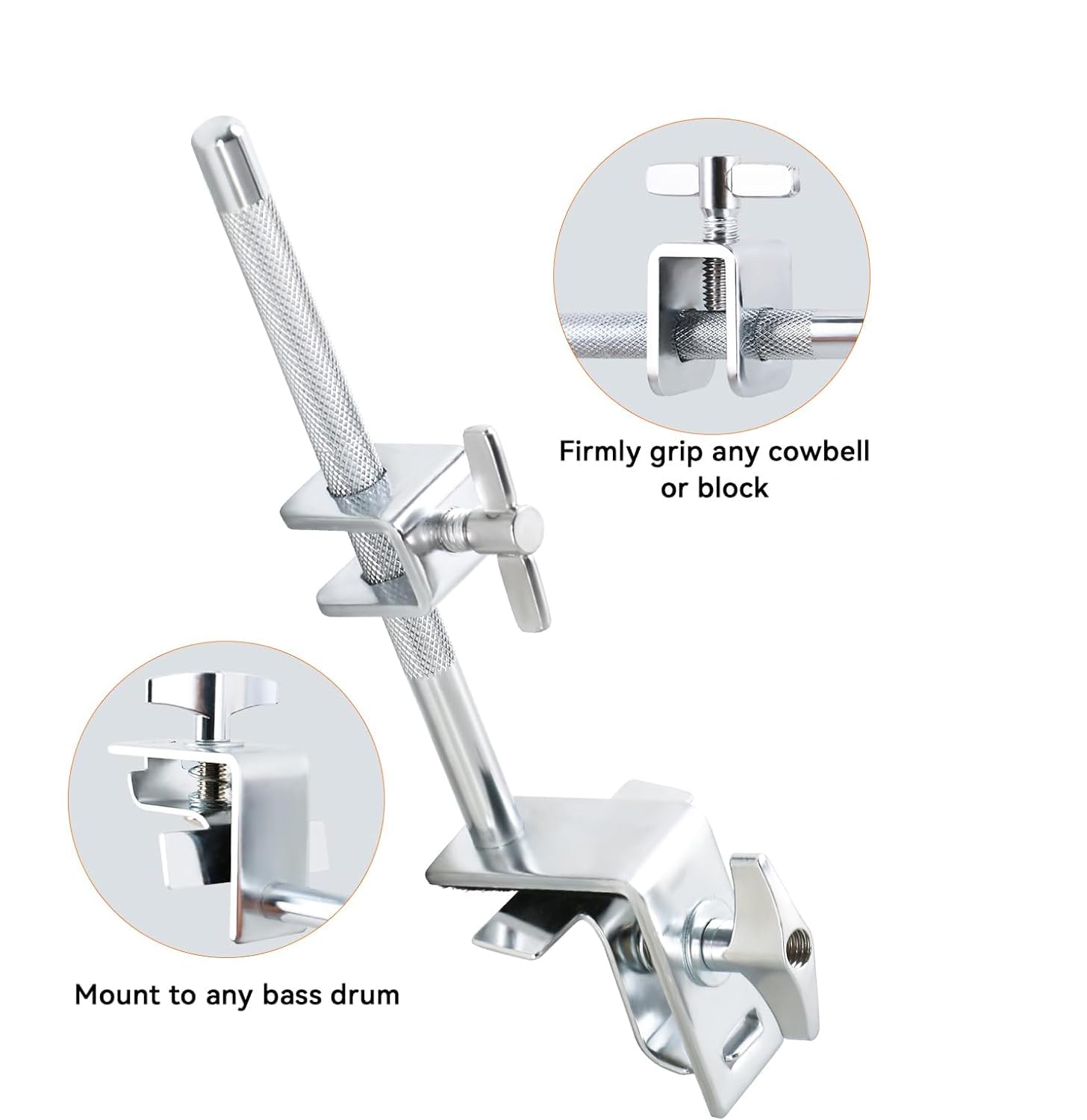 2. Con mandíbulas paralelas, proporciona una excelente fuerza de sujeción para un fácil ajuste de la campana hacia arriba y hacia abajo. No se requieren soportes o hardware adicionales. Puede proporcionarte un largo tiempo de práctica y entretenimiento.