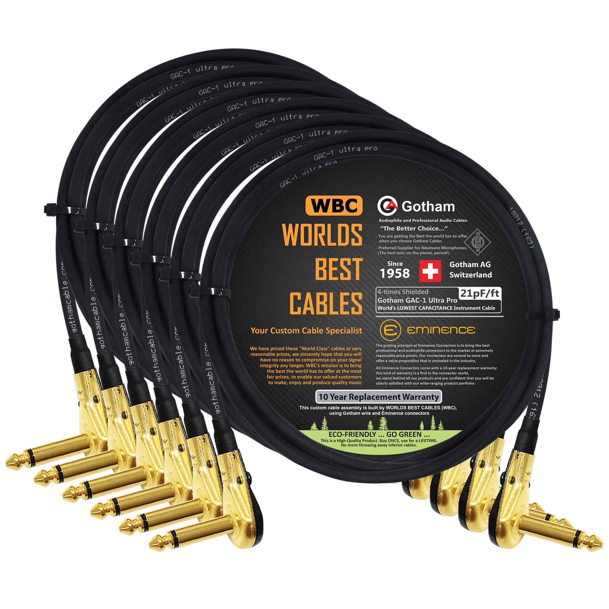 Hecho a medida 6 Unidades – Gotham GAC-1 Ultra Pro – 3 Pies Premium, Bajo Capacidad (21 pf/F) Cable de conexión de instrumento de bajo de guitarra Bajo Efectos – El Gotham GAC-1 Ultra Pro cuenta con la exclusiva doble protección de Reussen de Gotham (2 escudos de cobre enrollados en espiral con 100% de cobertura) y dos capas separadas de PVC conductoras y aislamiento PE celular. Terminado con conectores TS de oro premium de 6.35mm tipo Panqueque de bajo perfil, de ángulo recto. IMPORTANTE, POR FAVOR NOTE: La longitud del cable se mide de punta a punta de cada conector, este es el estándar de la industria para medir cables de conexión.