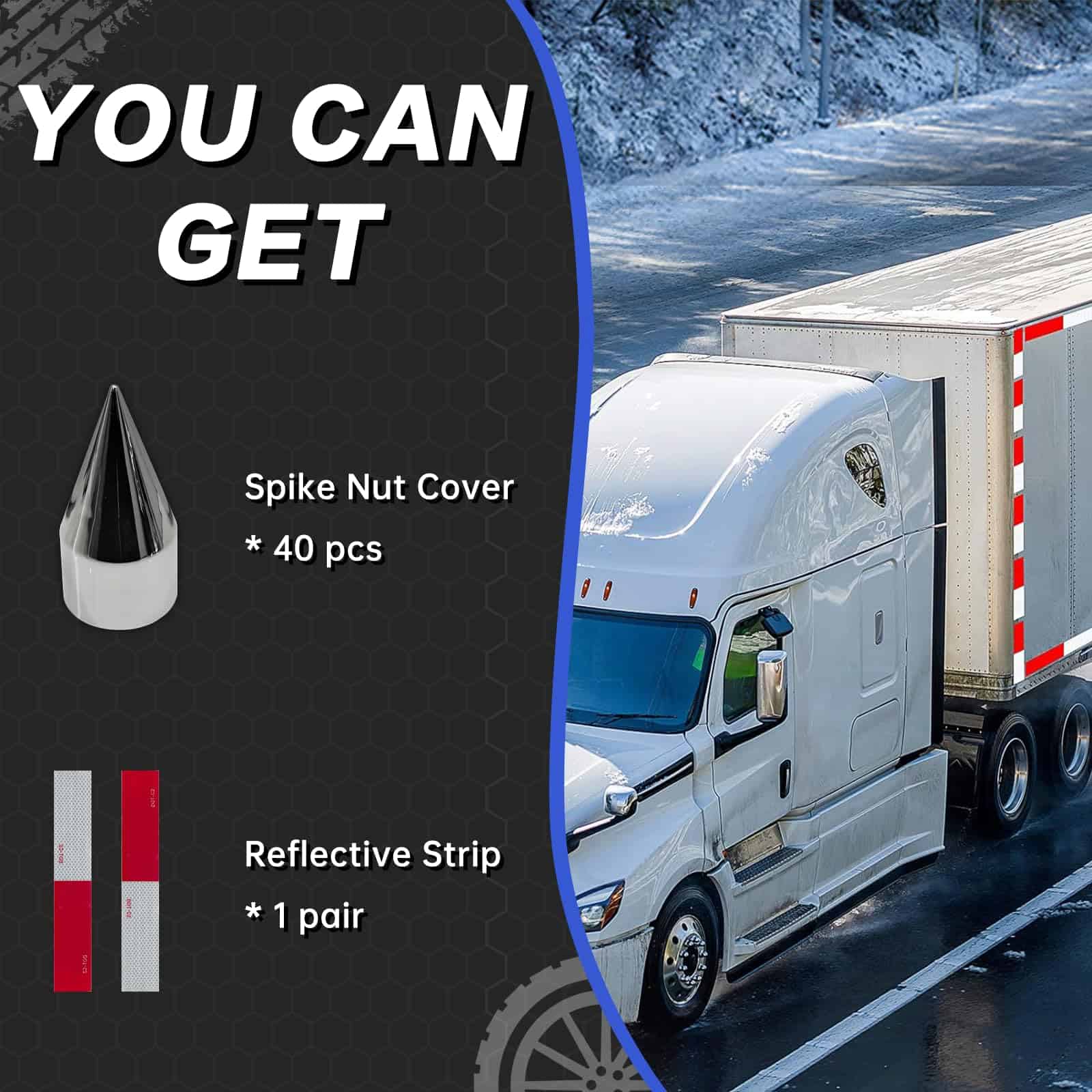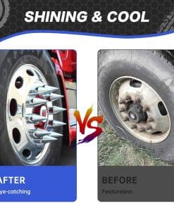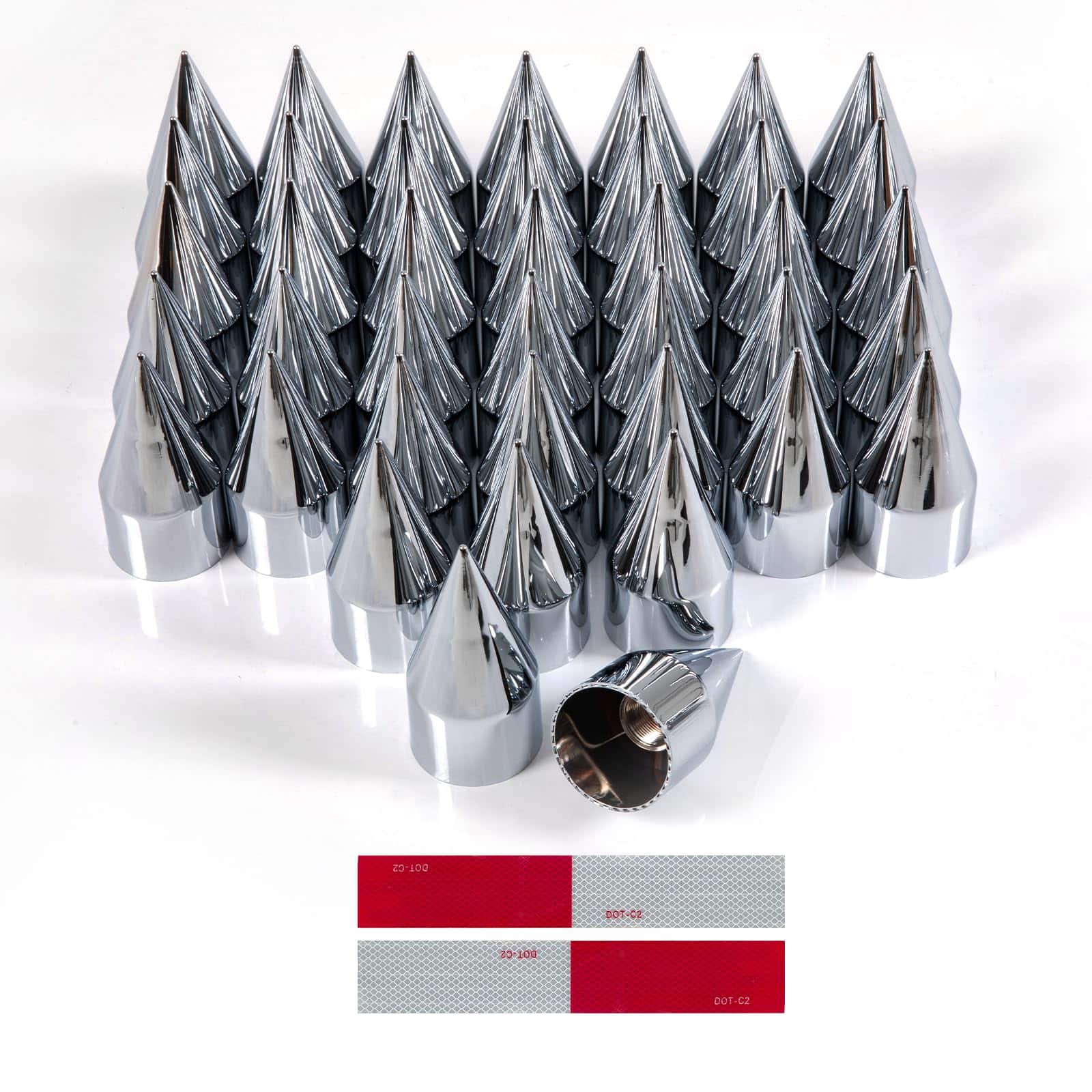 60Pcs 32/33mm 4 1/4″ Tapacubos de Tuerca de Rueda para Camiones Semirremolque, ABS Cromo Plástico Antioxidante Tuerca Puntas Tornillo en Tapas, Tapones de Tuerca para Camiones Semirremolque – Crafted from premium ABS plastic, these lug nut covers are built to last. They are resistant to rust, corrosion, and harsh weather conditions, ensuring long-term durability and protection for your lug nut covers. These lug nut covers have a perfect fit for 32/33mm lug nuts, making them suitable for most Volvo (VNL), Peterbilt, Kenworth, Mack, Western Star, Freightliner (Cascadia, Columbia, M2, FLD) Semi Trucks. The chrome finish on the lug nut covers gives them a mirror-like and eye-catching appearance, enhancing the look of your vehicle. The mirror surface is multi-coated with 1 layer of Nickel, 1 layer of Copper, 1 layer of Semi-Bright Nickel, and 1 layer of Bright Chrome. This multi-layer coating ensures a shiny and durable finish for your semi truck lug nut covers. The package includes 60 chrome lug nut covers, each individually packaged to prevent scratching, and 2 reflective strips. The lug nut covers feature a spiral design for easy installation and removal, making them convenient for use and maintenance in all applications. We are committed to providing high-quality wheel accessories and exceptional customer service. Our team is available to assist you within 24 hours if you have any questions or concerns about your lug nut covers, ensuring a satisfying solution for all your needs.
