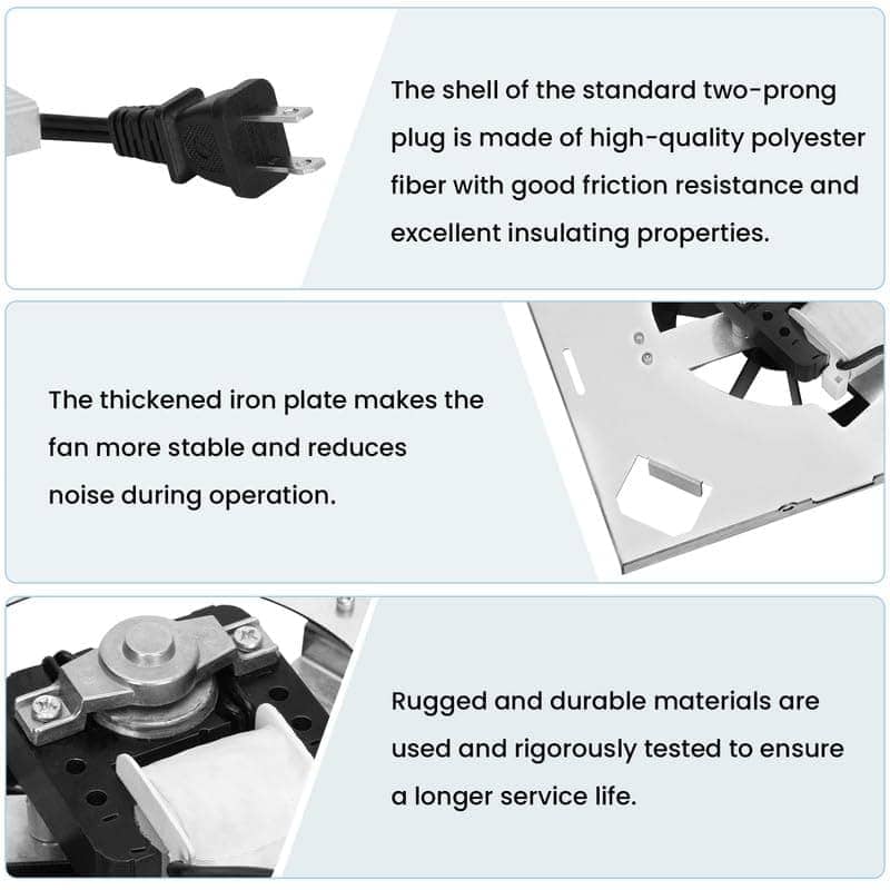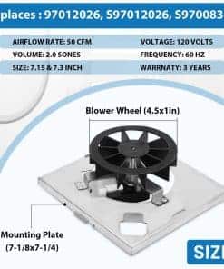 El ventilador de baño 50CFM es compatible con varios modelos de Nutone y Broan, incluyendo 696N-R02 B, 695N-R02 B, 696N-R01 B, entre otros. Además, se adapta a los modelos 659 y 678. Con una potencia de 2.0 Sones, este ensamble de ventilador S97012026 es ideal para mejorar la calidad del aire interior, eliminando olores desagradables y humedad en el hogar. Fabricado con materiales resistentes y duraderos, este ventilador cuenta con una carcasa de enchufe de alta calidad y una placa de montaje estable que reduce el ruido durante su funcionamiento. Disfrute de una experiencia perfecta con este ventilador de baño que ofrece alta velocidad de rotación, bajo nivel de ruido y un excelente rendimiento de ventilación. Prometemos brindarle un servicio postventa completo, asegurando su satisfacción con el producto adquirido