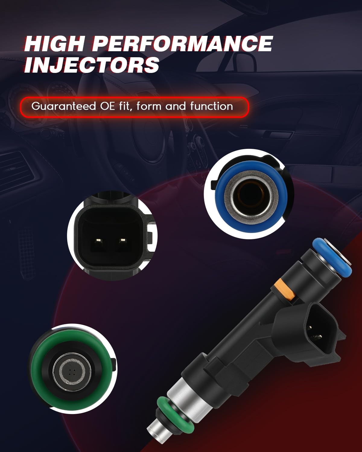 4. FÁCIL INSTALACIÓN – Inyectores de combustible y O-rings pre-preparados, reemplazo directo de las piezas originales de su vehículo para una instalación más sencilla.