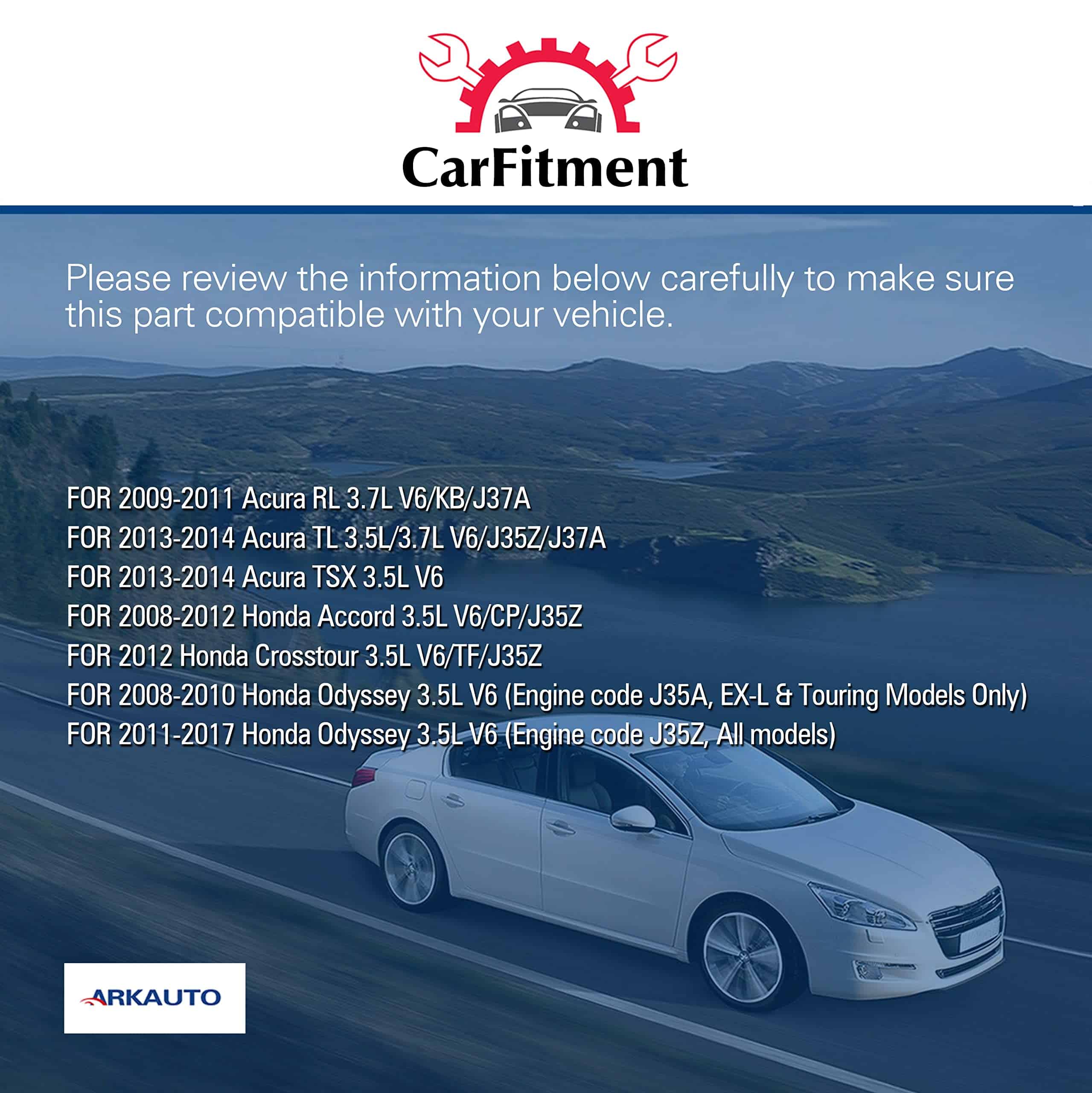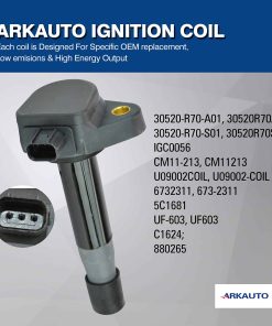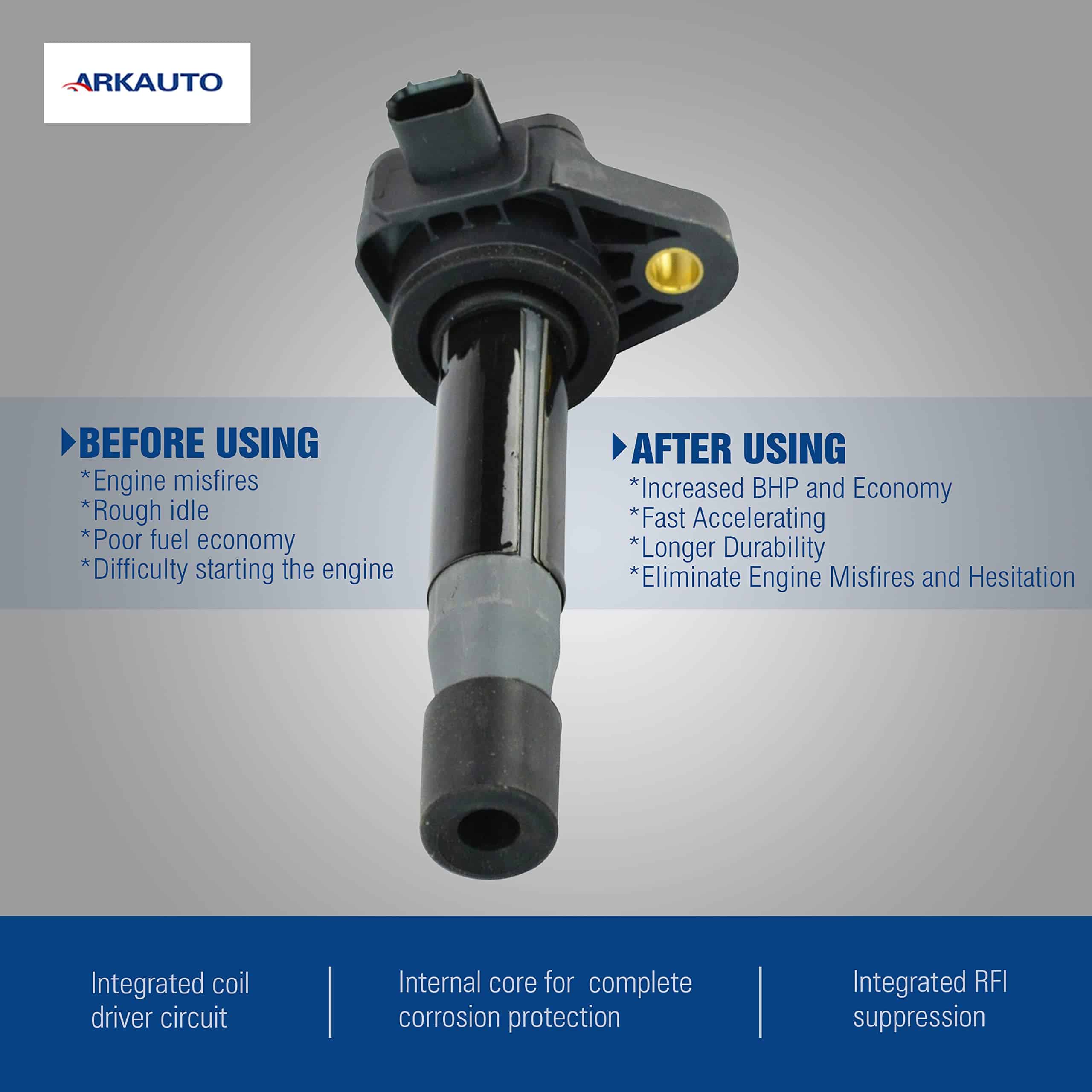 ARKAUTO Ignition coils están hechos siempre con cobre de alta calidad, diseñados para una aplicación específica y probados en carretera. Por favor, revise la información a continuación cuidadosamente para asegurarse de que esta pieza es compatible con su vehículo. La ventaja – las bobinas de encendido ARKAUTO están todas diseñadas de acuerdo con los tipos originales OE, que pueden reemplazar perfectamente sus bobinas originales defectuosas y funcionar como las originales. Esta bobina es un reemplazo para OE: 30520-R70-A01, 30520R70A01, 30520-R70-S01, 30520R70S01, IGC0056, CM11-213, CM11213, U09002COIL, U09002-COIL, 6732311, 5C1681, UF-603, UF603, C1624; los compradores deben comparar el OE con sus coches originales cuidadosamente antes de realizar el pedido para evitar comprar una pieza incorrecta y causar una pérdida innecesaria. Compatible con Acura RL TL TSX Honda Accord Crosstour Odyssey 3.5 3.7 V6 J35Z J37Z. Reduce problemas comunes de bobinas de encendido como; arranque nulo/difícil, tiempo de cranking largo, fallos de encendido, falta de potencia, cambios de transmisión inconsistentes, ensuciamiento de bujías, fallo prematuro del convertidor catalítico, mala economía de combustible, iluminación de la luz de comprobación del motor. Garantía limitada de 1 año – Por favor, verifique si esta pieza es compatible con su vehículo