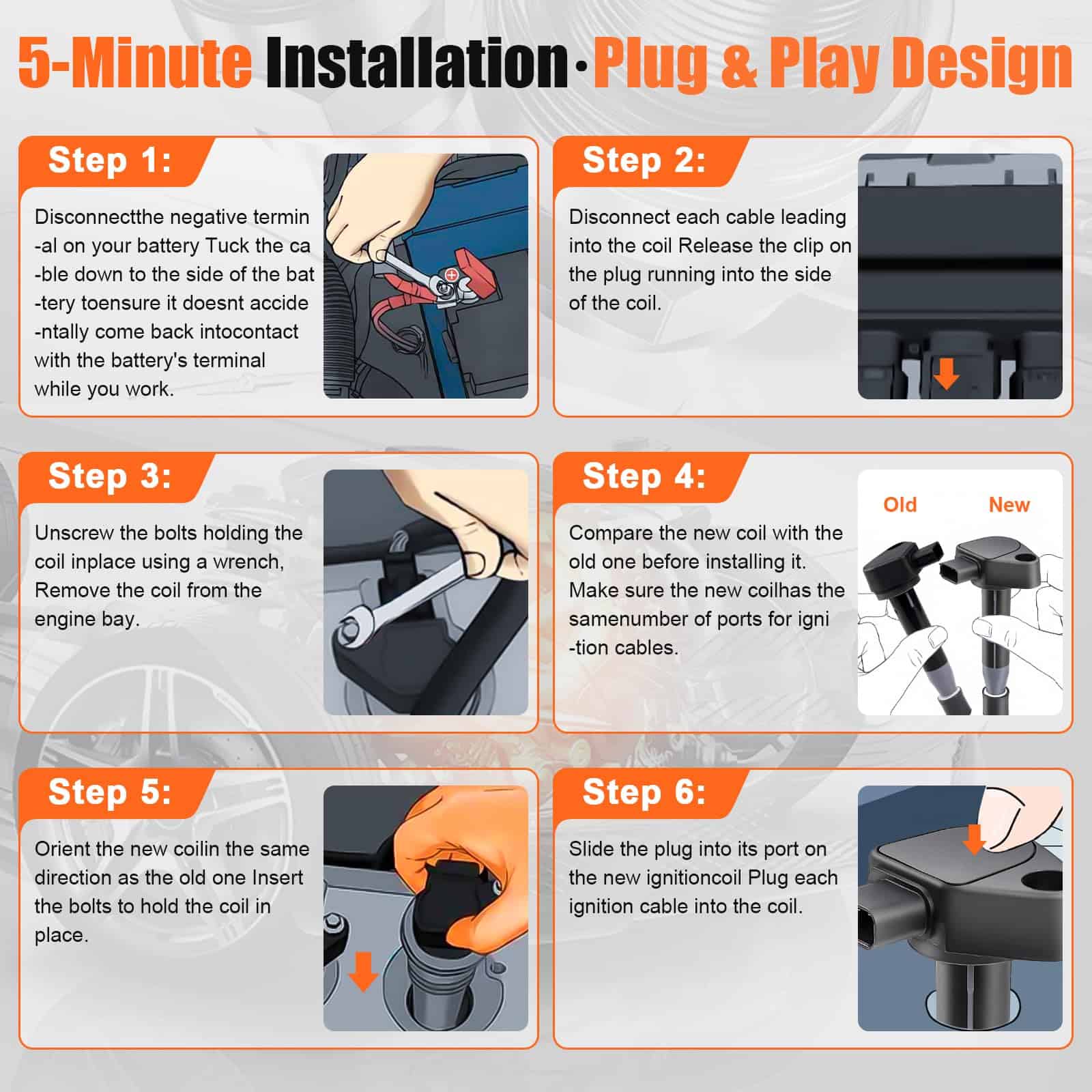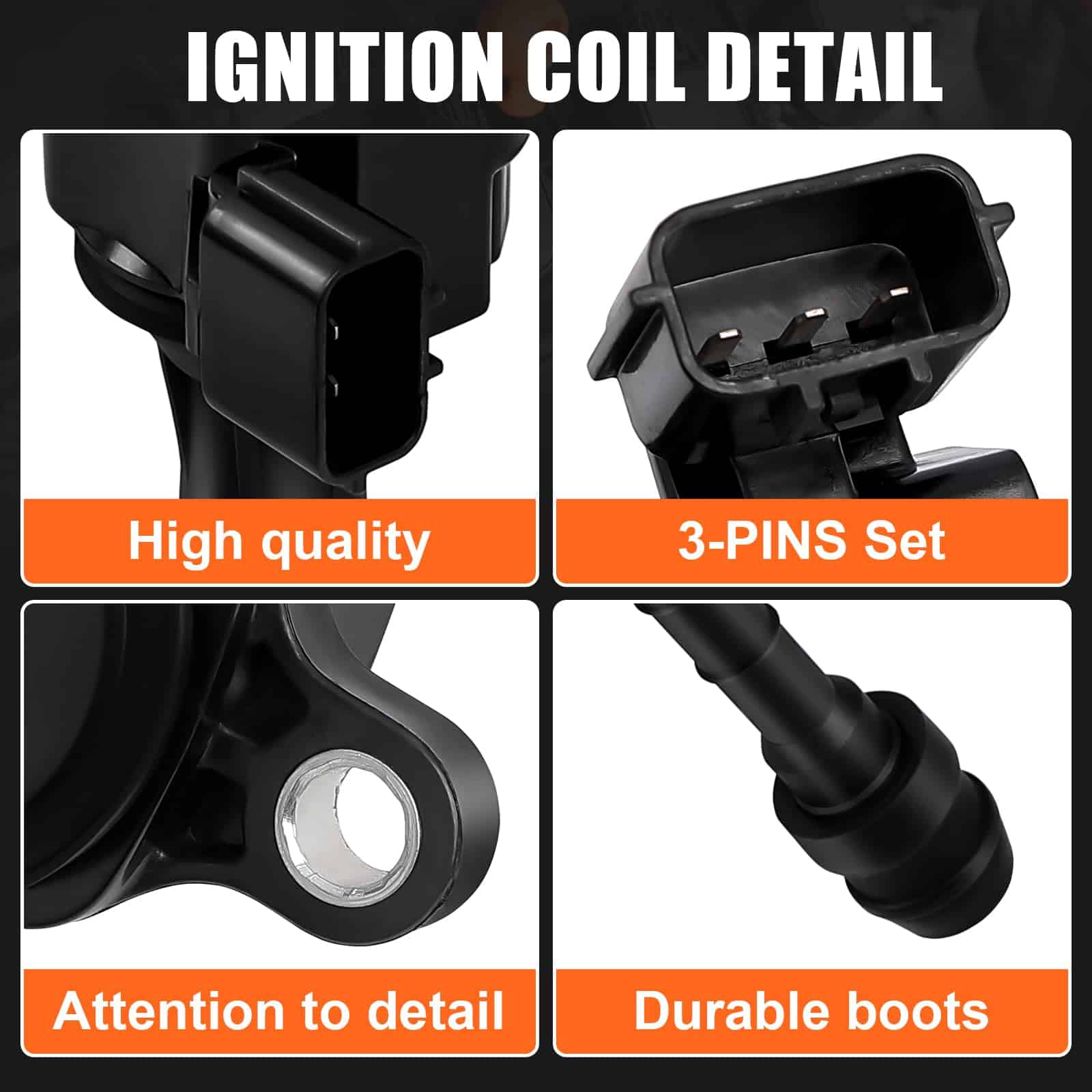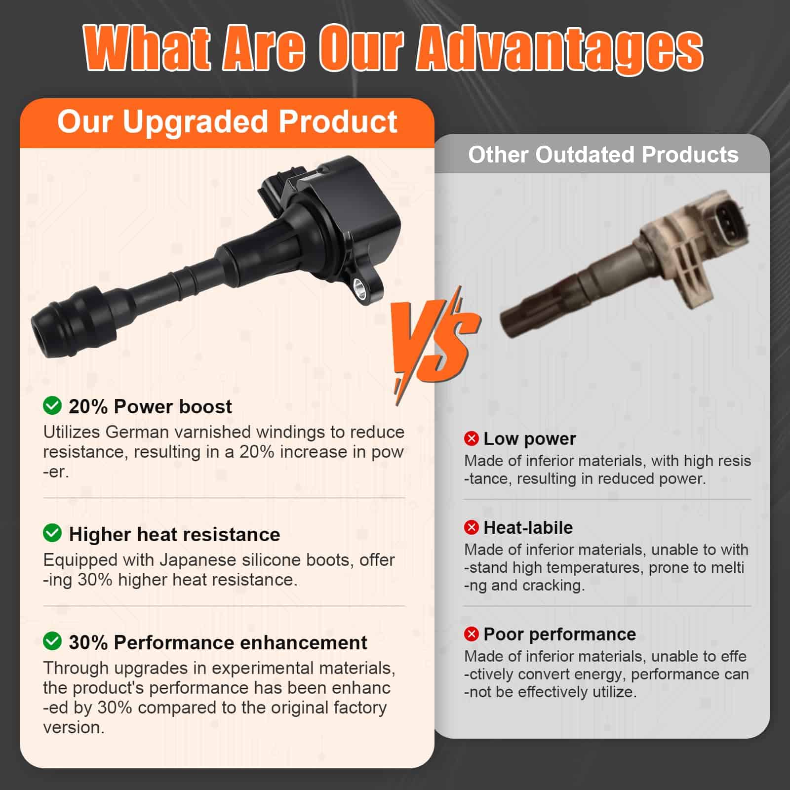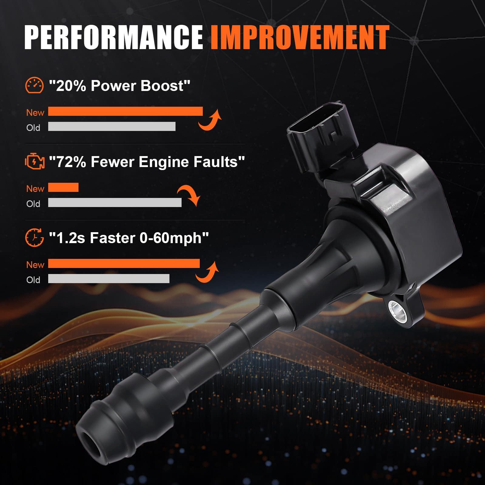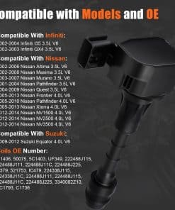 Experimenta un aumento del 20% en el rendimiento con bobinas de encendido con bobinados barnizados alemanes que reducen la resistencia, botas de silicona japonesas que ofrecen una resistencia al calor un 30% mayor. A través de mejoras en materiales experimentales, el rendimiento de nuestro producto se ha mejorado en un 30% en comparación con la versión de fábrica original. Solución completa del sistema de encendido: soluciona problemas comunes como la marcha irregular (72% de reducción en las fluctuaciones de velocidad), luz de verificación del motor (códigos de falla OBDII P0300 – P0304), mala aceleración (mejora de 1,2 segundos de 0 a 60 mph) y desperdicio de combustible (alrededor de una reducción del 10% en pruebas reales). Durabilidad de grado militar: nuestra bobina de encendido cuenta con un sistema de protección de tres capas. Presenta encapsulación de resina epoxi con una clasificación de resistencia al agua IP67, un núcleo de acero al silicio que ofrece una mejora del 40% en la resistencia a la vibración y una carcasa de aleación de cobre-níquel que proporciona una eficiencia del 35% mejor en la disipación del calor. Como resultado, nuestra bobina de encendido es más duradera que la equipada originalmente de fábrica. Garantía de 24 meses: disfruta de una garantía de 24 meses, devolución sin problemas de 30 días y soporte técnico durante todo el año (de 9 am a 9 pm EST). Con un tiempo de respuesta promedio de menos de 60 minutos. Si tienes algún problema o pregunta, nuestro equipo de soporte dedicado está disponible para ayudarte en cualquier momento.