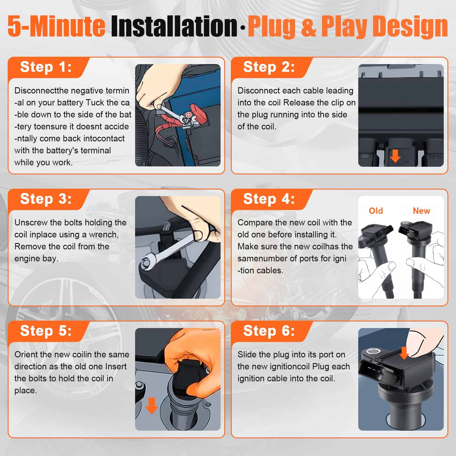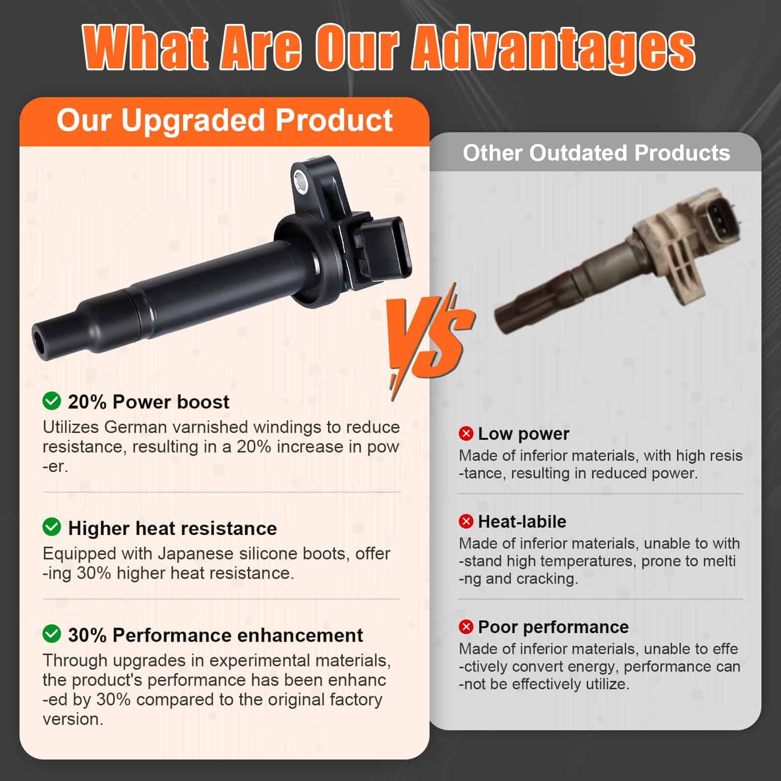 Nuestro sistema de bobinas de encendido ofrece un aumento del 20 % en potencia con devanados barnizados alemanes que reducen la resistencia, botas de silicona japonesas que ofrecen un 30 % más de resistencia al calor. A través de mejoras en materiales experimentales, el rendimiento de nuestro producto se ha mejorado en un 30 % en comparación con la versión original de fábrica. Solución completa para el sistema de encendido: Solucione problemas comunes como ralentí áspero (reducción del 72 % en fluctuaciones de velocidad), luz de motor de verificación (códigos de falla OBDII P0300 – P0304), pobre aceleración (mejora de 1,2 segundos de 0 a 60 mph) y desperdicio de combustible (Aproximadamente 10 % de reducción en pruebas reales). Durabilidad de grado militar: Nuestra bobina de encendido se beneficia de un sistema de protección de tres capas. Presenta encapsulamiento de epoxy con una clasificación impermeable IP67, un núcleo de acero de silicio que ofrece un 40 % de mejora en la resistencia a la vibración, y una carcasa de aleación de cobre-níquel que proporciona un 35 % mejor eficiencia de disipación de calor. Como resultado, nuestra bobina de encendido es más duradera que la original de fábrica. Garantía de 24 meses: Disfrute de una garantía de 24 meses, devoluciones sin complicaciones de 30 días y soporte técnico durante todo el año (de 9 am a 9 pm EST). Con un tiempo promedio de respuesta inferior a 60 minutos. Si tiene algún problema o pregunta, nuestro equipo de soporte dedicado está disponible para ayudarlo en cualquier momento.