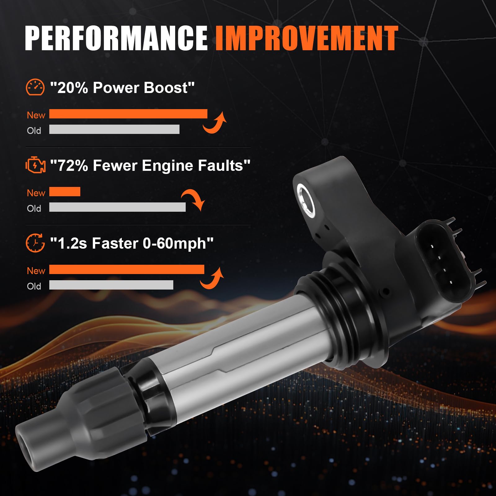 3. Solución Completa para el Sistema de Encendido: Solucione problemas comunes como ralentí áspero (reducción del 72% en las fluctuaciones de velocidad), luz de motor encendida (códigos de falla OBDII P0300 – P0304), mala aceleración (mejora de 1.2 segundos de 0 a 60 mph) y desperdicio de combustible (cerca de un 10% de reducción en pruebas reales).