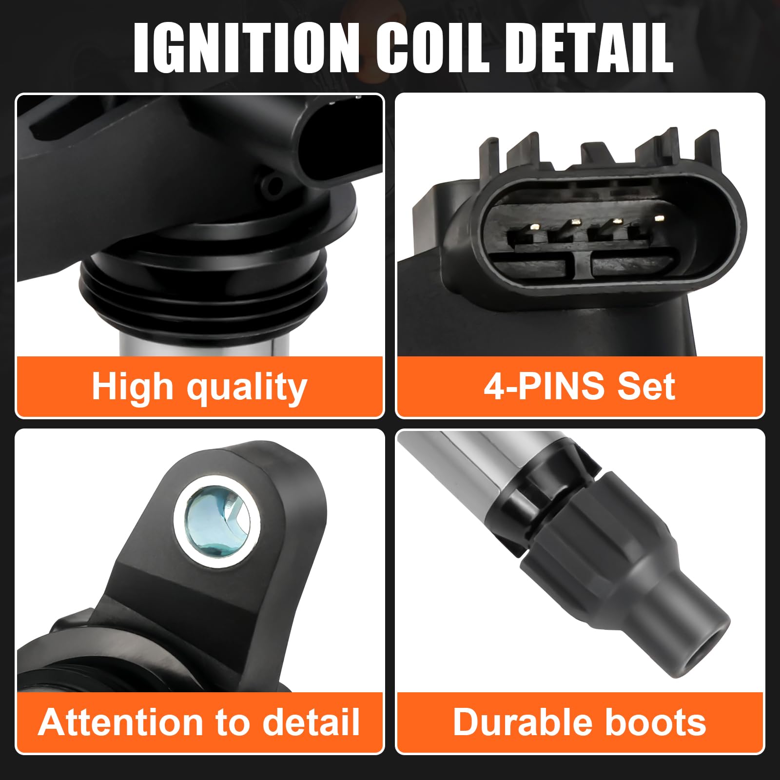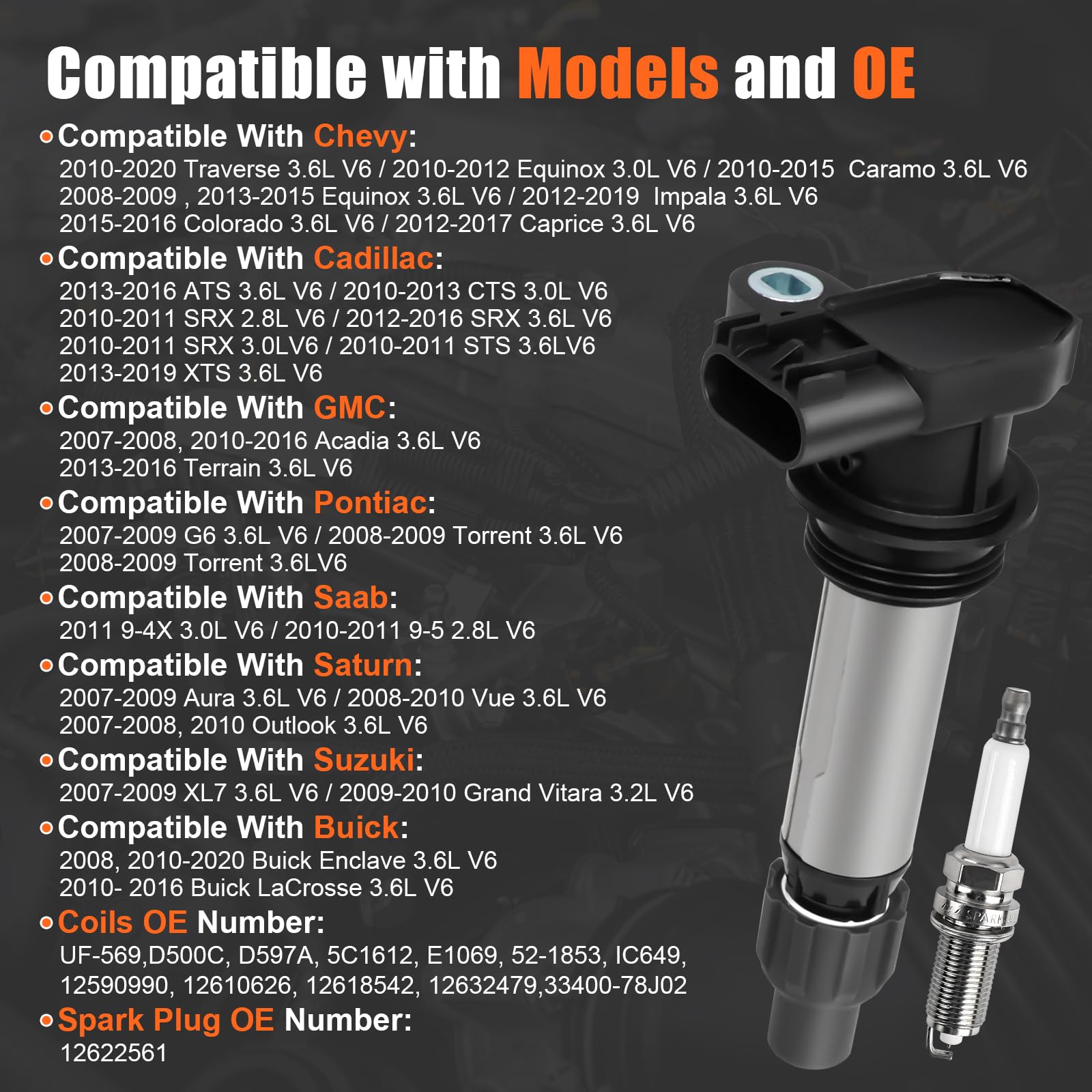 1. Modelos de Vehículos Compatibles: Bobina de encendido apta para modelos de GMC: Acadia | Terrain. Apta para modelos de Chevy: Traverse | Equinox | Caramo | Impala | Colorado | Caprice. Apta para modelos de Cadillac: ATS | CTS | SRX | STS | XTS. Apta para modelos de Buick: Enclave | LaCrosse, etc. Para conocer los modelos aplicables detalladamente, consulte la página y la imagen principal. El paquete de bobinas reemplaza UF569, 5C1612, C1555, Ic019, D500C, D597A, E1069, 52-1853, IC649.