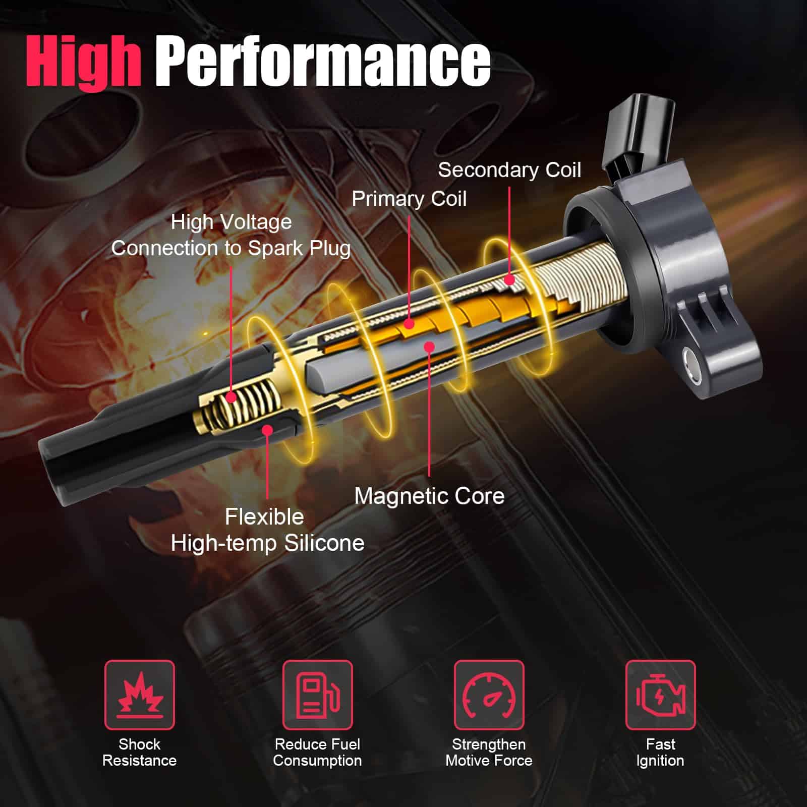 Nuestras bobinas de encendido y bujías están diseñadas para reemplazar directamente las piezas originales, proporcionando un rendimiento confiable y consistente. El conjunto incluye un total de 6 piezas, asegurando que pueda reemplazar todas las bobinas de encendido y bujías necesarias en su vehículo.