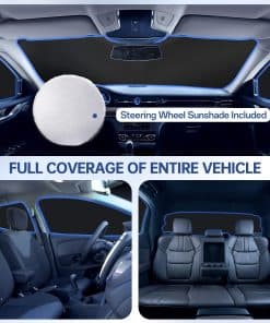 6pcs Car Window Shades para Toyota Prius 2023 2024 2025 es un conjunto de coberturas de ventanas de coche diseñadas específicamente para adaptarse a su Prius. Estas coberturas de ventanas de coche ofrecen una protección mejorada de privacidad al proporcionar cobertura completa para su automóvil, creando un espacio cómodo y privado para actividades como acampar, dormir la siesta y relajarse. Con un material reflectante actualizado en 2025, estos parasoles bloquean el 99% de los rayos UV, ayudando a mantener fresco su automóvil y protegiendo su tablero, asientos y otras características interiores de daños solares y decoloración. El conjunto incluye una bolsa con cremallera para un fácil almacenamiento, así como una bolsa de regalo que se puede usar como cubierta de volante, manteniendo sus manos frescas y protegiendo su volante. Los parasoles se instalan fácilmente y se pliegan rápidamente para un almacenamiento compacto en la bolsa incluida. Mantenga su Prius fresco y protegido con este set de coberturas de ventanas de coche de FSHAANY’S.