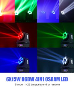6x15W Mini Bee Eye Moving Head DJ Light, 90W LED RGBW Stage