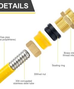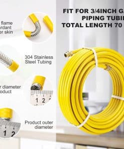 La línea de gas CSST de 70FT de 3/4 » es una excelente opción para aquellos que buscan una solución confiable para sus necesidades de gas natural o propano. Con una longitud total de 40FT y un diámetro interno de 0.47″/12mm, esta línea de gas es lo suficientemente amplia para adaptarse a una variedad de aplicaciones, desde estufas hasta calentadores de agua. Hecha de acero inoxidable SUS304 resistente a la corrosión y con una chaqueta amarilla resistente a los rayos UV de 0.079 pulgadas, esta línea de gas es duradera y resistente a los elementos. Viene con fittings BRASS de 3/4″ MALE en ambos extremos, lo que facilita la instalación y las conexiones. Gracias a su diseño corrugado anular, la línea de gas es flexible y se puede doblar según las necesidades sin bloquear la circulación de gas. Sin embargo, es importante consultar con un profesional antes de realizar cortes en la línea de gas, ya que un corte incorrecto podría provocar problemas de funcionamiento. Con una amplia aplicación que incluye tubo de gas para chimenea, manguera de gas para calentador de agua, tubo de gas para generador y mucho más, esta línea de gas CSST es una elección versátil y confiable. Además, las líneas de gas están diseñadas para resistir las presiones y temperaturas comunes en la distribución de gas, lo que las hace adecuadas para su uso en diversas condiciones ambientales. Para una instalación segura, es importante seguir las pautas de instalación, que incluyen proteger la tubería de gas dentro de un conducto impermeable no metálico al enterrarla bajo tierra. Como medida de seguridad adicional, el fabricante recomienda no enterrar la tubería directamente en el suelo sin conducto. En caso de cualquier problema con la manguera de gas, como fugas o fittings rotos, se recomienda ponerse en contacto con el fabricante para obtener soporte profesional y soluciones eficaces.