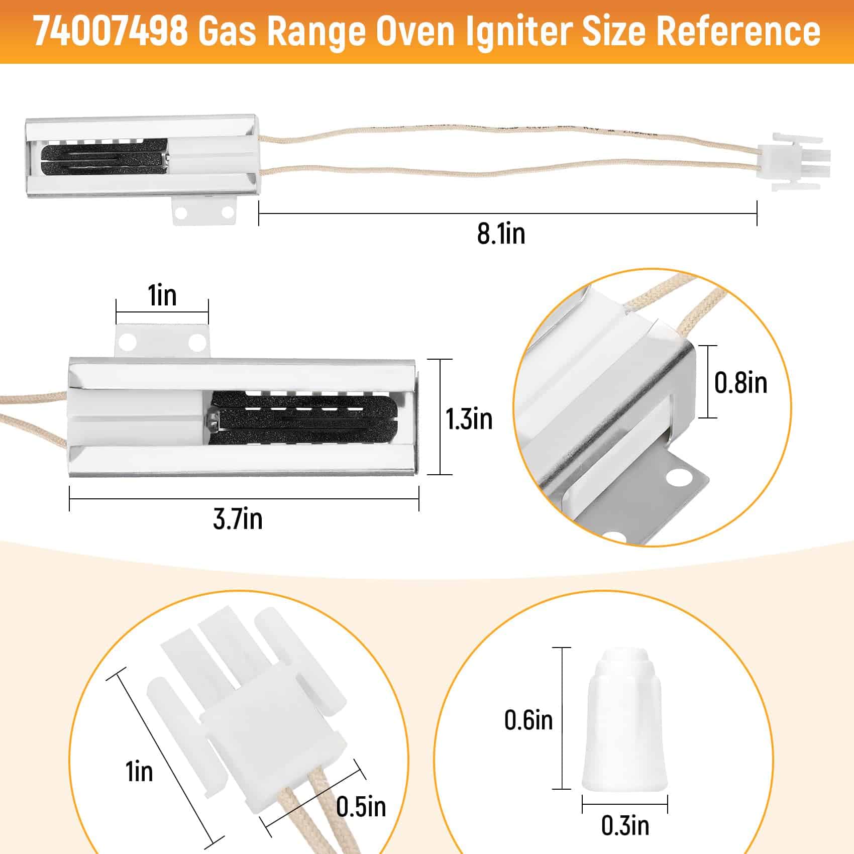 El elemento de reemplazo del encendedor de horno de gas 74007498 7432P075-60 es compatible con las estufas/hornos de Whirlpool y Maytag. Asegúrese de verificar el modelo de su estufa/horno antes de realizar la compra. Si tiene alguna inquietud sobre la compatibilidad, no dude en proporcionarnos el número de modelo de su horno/estufa para verificarla.