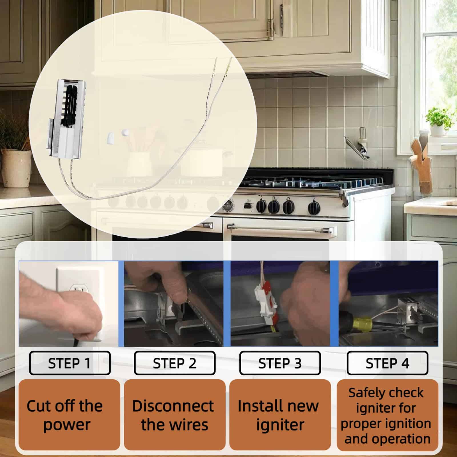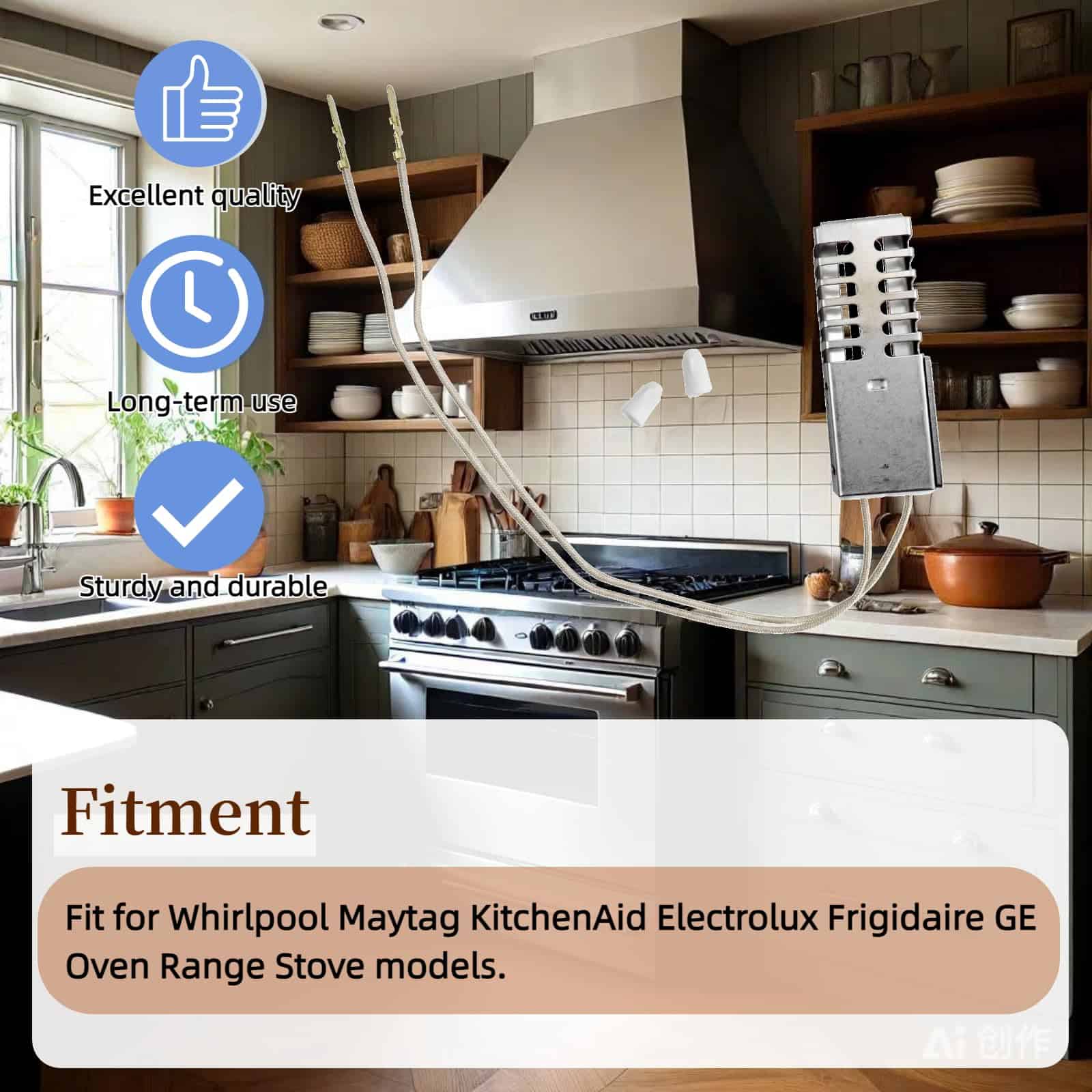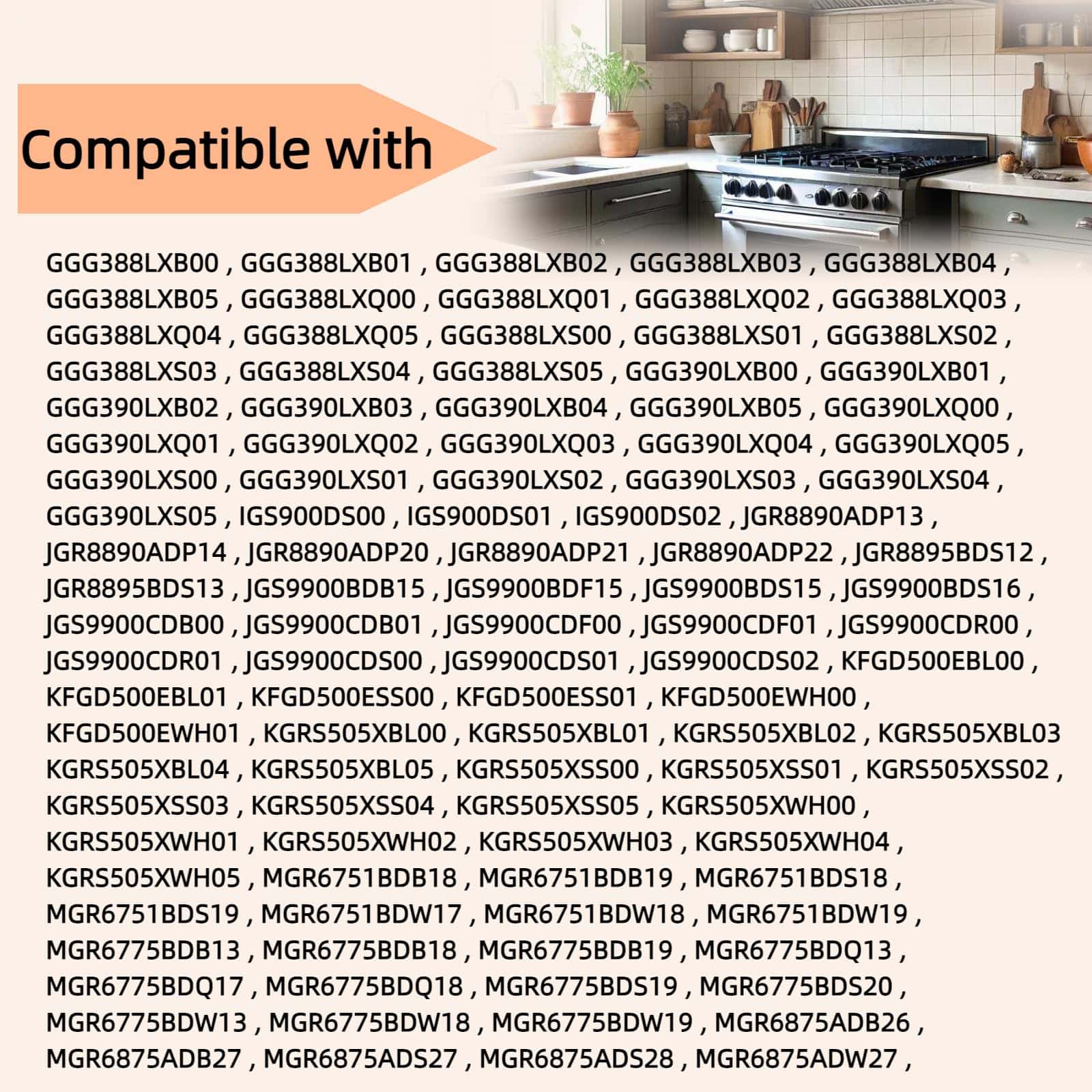 1. Compatibilidad: Ajuste para estufas para horno Whirlpool, Maytag, KitchenAid, Electrolux, Frigidaire, GE. Se adapta a los modelos de rango de la serie MGR, JGS, GGG, KFG, KGR, MGT, WGG, entre otros. No se preocupe si nota decoloración del encendedor, ya que no afecta su uso.