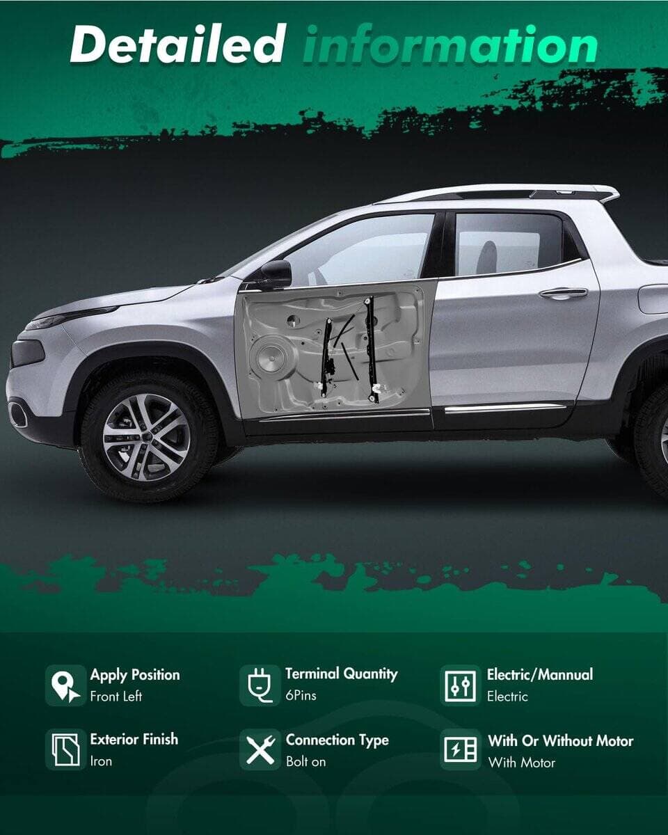 Este regulador de ventana eléctrico con motor es una pieza de repuesto de calidad OEM para vehículos Infiniti QX56 2004-2010, Nissan Armada 2005-2015, Nissan Titan 2004-2015 y Nissan Pathfinder Armada 2004. Fácil instalación: Regulador de ventana de repuesto OE. Diseñado para adaptarse perfectamente al equipo original, proporcionando un ajuste directo y sin problemas. Nota: Este conjunto de motor y regulador de ventana de repuesto está fabricado con precisión y ha sido sometido a rigurosas pruebas para garantizar un ajuste, funcionamiento y rendimiento exactos al regulador de ventana original en vehículos específicos.