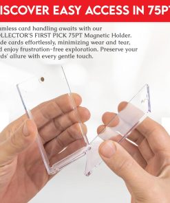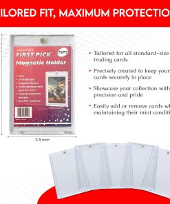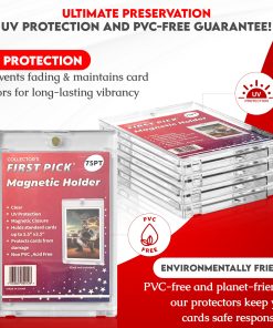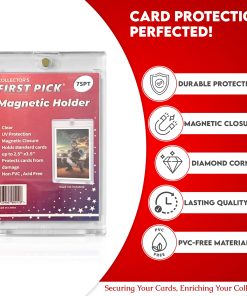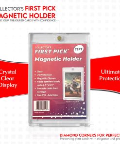El estuche premium Collector’s First Pick es un estuche de almacenamiento de tarjetas de intercambio diseñado como el destino final para sus tarjetas de intercambio coleccionables. Los estuches magnéticos de dos piezas están diseñados de forma única con cierre magnético y bisagras de inserción deslizante fácilmente accesibles para que nunca tenga que usar un destornillador de nuevo. El estuche utiliza aditivos bloqueadores de UV para proteger su tarjeta de los dañinos rayos UV y está hecho con materiales no de PVC para proporcionar protección libre de ácido. Asegurando que su tarjeta valiosa mantenga su condición debajo de la pantalla. Nuestros estuches también son ideales para presentar tarjetas de juego. Este modelo puede contener tarjetas estándar (2.5″ x 3.5″) con opciones de múltiples grosores. Esta lista en particular es para nuestra Opción de 75PT. Se ajusta a las tarjetas de intercambio deportivas o de juego de tamaño estándar (2.5″ x 3.5″) en múltiples grosores. Hecho con materiales ultra claros no de PVC también conocidos como libres de PVC con aditivos bloqueadores de UV. Esquinas de diamante cortadas específicamente para mantener las esquinas de las cartas en perfectas condiciones Borde helado y materiales claros para mostrar los verdaderos colores de su tarjeta con una presentación de primera calidad Fácil bisagra de inserción y cierre magnético para mantener su tarjeta segura. Proteja sus valiosas tarjetas de intercambio y deportivas con el Estuche de Tarjaetas Magnéticas Premium de 180PT de un Toque. Con un paquete de 5, tendrá suficientes protectores de tarjetas de alta calidad y libres de PVC para mantener su colección segura y protegida. El diseño ultra claro garantiza que sus tarjetas estén siempre en exhibición, mientras que la protección UV las protege de posibles daños. Ya sea un coleccionista de tarjetas de béisbol, un entusiasta de los deportes o un aficionado a las tarjetas de intercambio, estos estuches magnéticos son la solución perfecta para proteger y mostrar sus posesiones más preciadas. El diseño de un solo toque hace que sea fácil insertar y sacar las tarjetas, mientras que el fuerte cierre magnético garantiza que se mantengan en su lugar. Estos estuches para tarjetas son no solo duraderos y duraderos, sino también convenientes y fáciles de usar. No más luchar con fundas endebles o intentar encajar tarjetas en espacios reducidos: el Estuche de Tarjetas Magnéticas de 75PT de un Toque proporciona una experiencia sin problemas y sin complicaciones para todas sus necesidades de almacenamiento de tarjetas. Cuando se trata de protectores y estuches para tarjetas, la calidad es lo que importa. Es por eso que nuestro estuche de tarjetas magnético está diseñado para proporcionar la máxima protección sin sacrificar visibilidad o accesibilidad.