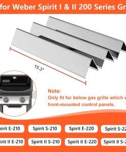 1. Perfecto para parrillas de la Serie 200 de Weber Reemplazo para Parrillas de Gas Weber Spirit 200 Series (Años de Modelo 2013-2017), como Spirit E-210, S-210, E-220, S-220 con paneles de control frontales. Compatible con Número de Parte Original: 7635, 67045. 2. Perfecto para parrillas de la Serie 200 de Weber Compatible con Parrillas de Gas Weber Spirit II E-210 S-210 con paneles de control frontales. También compatible con Weber 47100001, 46113101, 46110001, 46100001, 46010074. NO se ajusta a la parrilla con panel de control lateral. 3. Material y Dimensiones El paquete incluye 3 Barras Flavorizantes. Dimensiones: 15.3 «L 3.5 «W 2.5 «H. Hecho de Acero Inoxidable Resistente. 4. Características del Producto Mayor resistencia a la corrosión, resistente a la oxidación y a la resistencia al calor. Evita que la grasa gotee en el tubo del quemador y protege la llama de la parrilla. Mejora la parrilla al reducir las llamaradas. Trae alimentos más sabrosos al mismo tiempo. 5. Garantía Si hay algún problema, no dude en contactarnos a través de Preguntas y Respuestas de Clientes o por Correo Electrónico. El equipo de servicio de DELSbbq le responderá en un plazo de 24 horas.