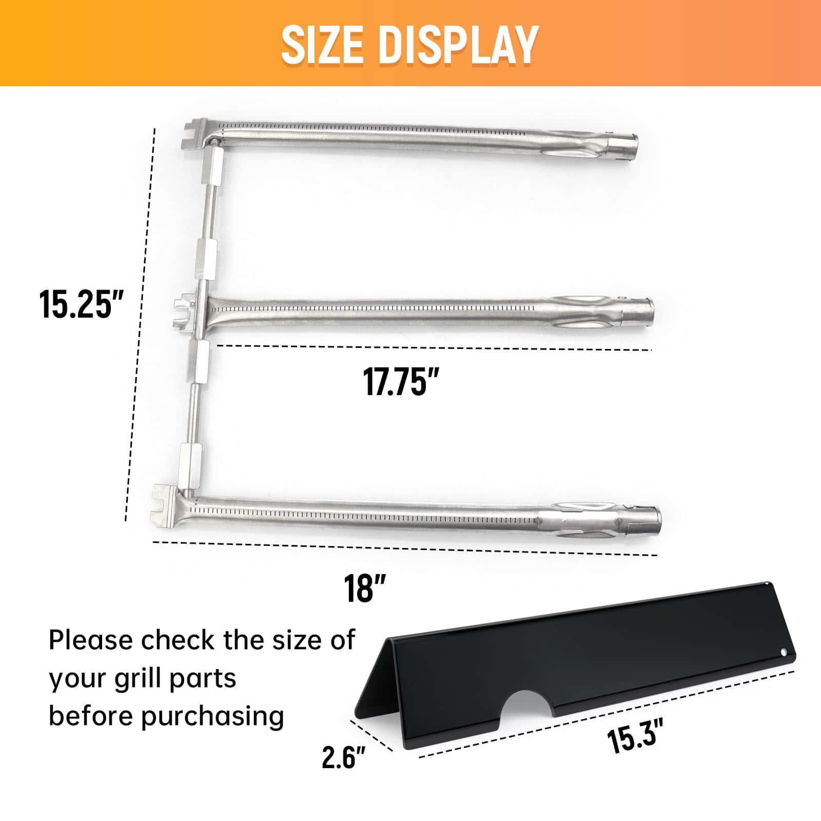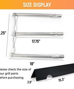 Perfecto Ajuste: Las barras flavorizer 7636 se ajustan a las parrillas de gas de la serie Weber Spirit 300: Weber Spirit E-310, S-310, E-320, S-320, E-330, S-330, SP-330 (2013 – 2017) con panel de control frontal. También se ajustan a la placa de calor de 15.3″ para las parrillas de gas SP-310, SP-330 para la serie Spirit II 300, (Años del Modelo 2013-Actual) NO se ajustan a los modelos con panel de control lateral. Se ajustan al modelo original de parrilla Weber: 46510001, 46700401, 47510001, 46500401, 47513101, 46410674, 46513101, 46700574, 46810001, 46500401, 47700401, 46800401, 47800401, 49010001, 45010001 y más. Dimensiones y Materiales: Dimensiones de las Barras Flavorizer 7636: 15.3″ L x 2.6″ W x 2.5″ H. Dimensiones del Tubo del Quemador 69787: 18″ L x 15.25″ W. Barras flavorizer de acero porcelanizado para parrillas Weber 67046 / 7636 / 69797 / 68843. El paquete viene con 5 barras saborizantes. El Grill «GS4» tiene una variedad de parrillas diferentes, preste atención a si este kit se ajusta a la Spirit II de Weber G4 (no Genesis II LX) primero. Barras Flavorizer de Alta Calidad: Hechas con acero grueso, proporcionando protección duradera para sus quemadores. Diseño de Muescas Actualizadas: Las piezas de la parrilla Weber Spirit vienen con 2 muescas para un calentamiento más uniforme y una mejor cocción, ventilación mejorada para una mejor quema, es más conveniente observar la condición de la llama ardiente.