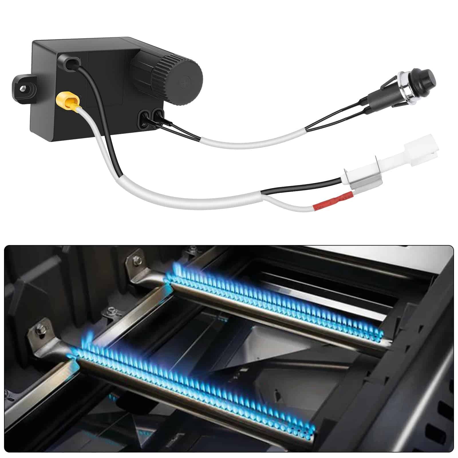 Este 7642 Grill Igniter es el reemplazo perfecto para las parrillas de gas Weber Spirit E/S-210, 220, 310, 315, 320, 330 con control frontal fabricadas a partir de 2013 en adelante. Está fabricado con materiales de alta calidad que garantizan una larga durabilidad. La instalación es rápida y sencilla, siguiendo las instrucciones proporcionadas. El paquete incluye todo lo necesario para la instalación: 1 botón de encendedor, 1 módulo de encendedor, 2 electrodos de encendedor y 1 instrucción detallada. Antes de comprar, asegúrese de verificar el modelo y tamaño de su parrilla para una compatibilidad perfecta.