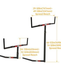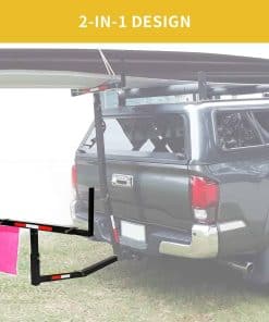 Este Extensor de Cama de Camioneta Montado en el Enganche está diseñado para permitirle transportar cargas de longitud extendida, como madera, tuberías, escaleras, canoas o cualquier otro artículo que exceda la longitud de la cama de su camioneta de manera segura. Los pines de enganche rápidos y fáciles le brindan la flexibilidad para ajustar tanto la altura como el ancho para adaptarse a varias dimensiones de carga, así como a las alturas de la cama de la camioneta. Este extensor de cama tiene una capacidad de carga distribuida de 750 libras y tiene un soporte lateral que se puede plegar si es necesario. Especificaciones: Condición: Nuevo Color: Negro Material: Acero Lista de embalaje: 1 x Extensor con bandera