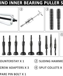 Para uso tanto profesional como DIY. Tipo de extractor de rodamientos interiores ciegos/divididos. Los colletes están hechos de acero de cromo molibdeno. Gira y se expanden para agarrar la carrera interna del cojinete.