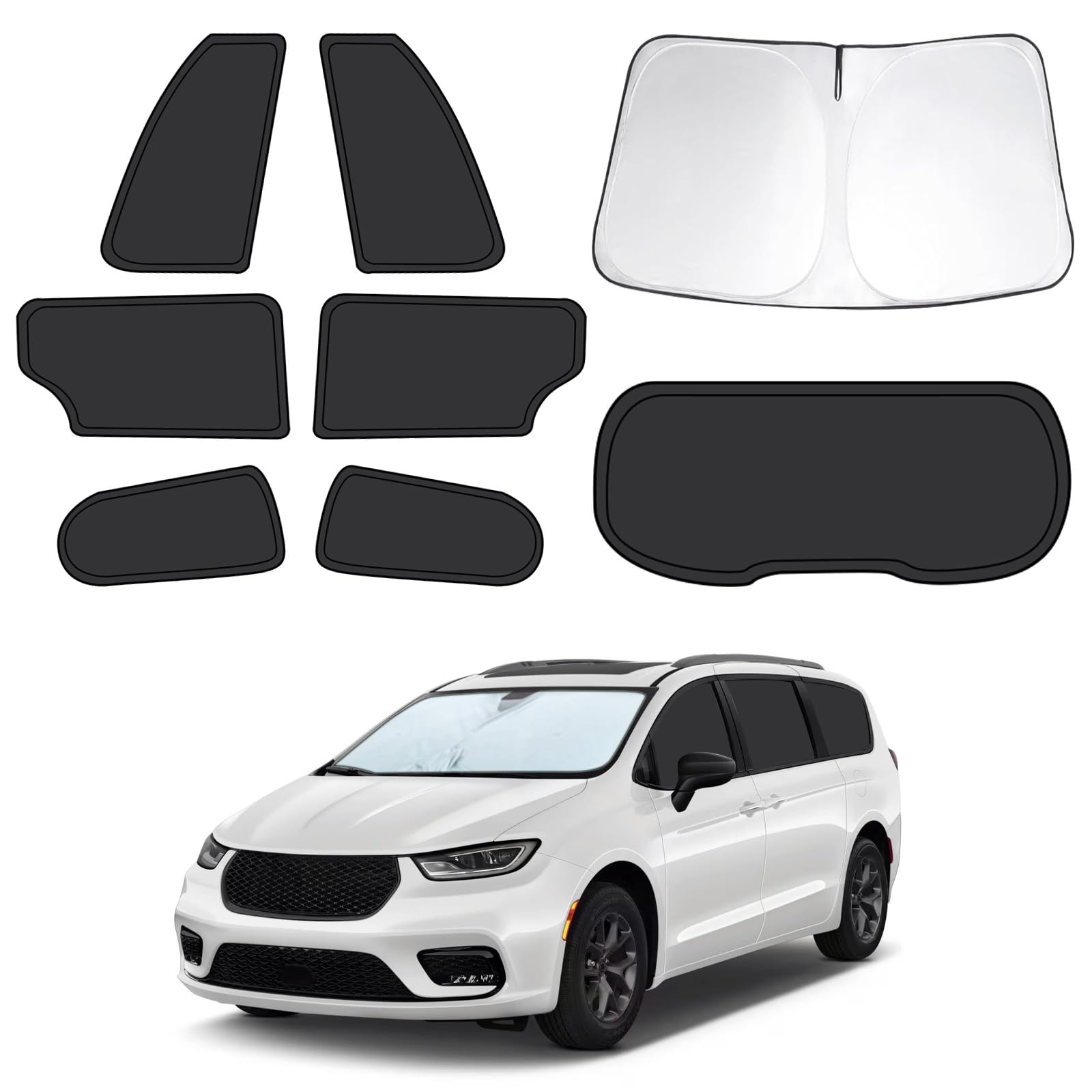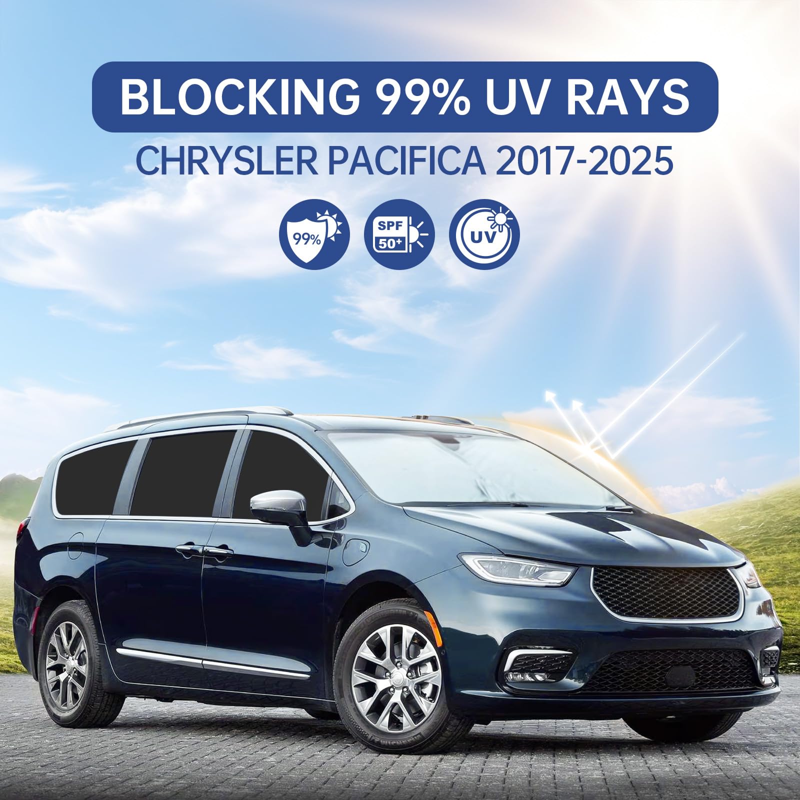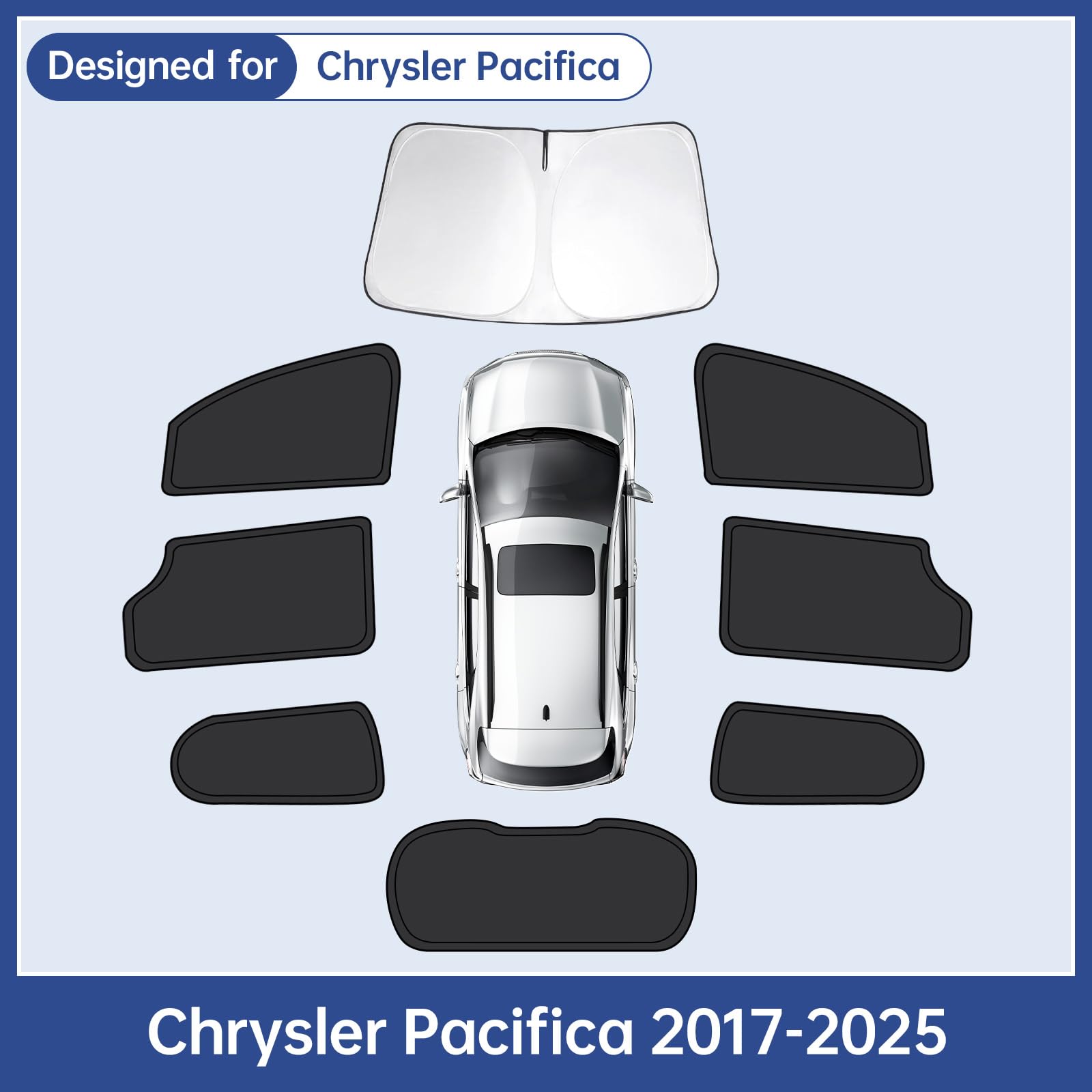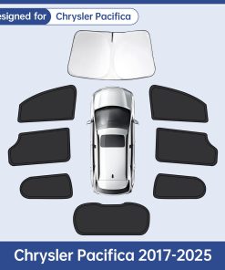 Las cubiertas de ventanas de coche de FSHAANY están diseñadas específicamente para adaptarse a Chrysler Pacifica(Híbrido) 2017-2025, brindando una cobertura completa para su vehículo. Estas cubiertas de ventanas de coche personalizadas ofrecen una protección mejorada de la privacidad, creando un espacio cómodo y privado para usted y sus pasajeros. Con la capacidad de bloquear el 99% de los rayos UV, estas sombras de ventanas de coche ayudan a mantener la temperatura interior de su vehículo baja, protegiendo su tablero, asientos y otras características interiores del daño solar y la decoloración. Además, este conjunto de cubiertas de ventanas de coche incluye una funda para volante de regalo, proporcionando una solución completa para proteger su vehículo y mantenerlo fresco en todo momento. Las sombras de ventanas laterales y parabrisas de FSHAANY se instalan de forma rápida y sencilla, y se pliegan de manera compacta para un almacenamiento conveniente cuando no están en uso.