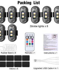 Fácil instalación: Esta luz estroboscópica inalámbrica se puede instalar mediante dos opciones de montaje: velcro o banda de goma. El proceso de instalación es rápido y sencillo, no se necesitan herramientas adicionales, puedes instalar estas luces estroboscópicas LED en cuestión de minutos.
