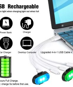 Muy brillante y recargable por USB: Cada luz estroboscópica viene con 2 LEDs de alta luminosidad y una batería recargable que se recarga fácilmente utilizando el cable USB incluido. Nuestras luces LED inalámbricas pueden cargarse por completo en 60 minutos y tienen una duración de batería de hasta 60 horas en modo flash, en el modo que consume más energía, como la luz roja dura 2 horas y la luz blanca 4 horas.