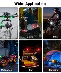 Amplias aplicaciones: Estas pequeñas luces estroboscópicas LED son adecuadas para una variedad de vehículos como drones, motocicletas, camiones, coches, bicicletas, bicicletas eléctricas y botes, vehículos recreativos o incluso las bicicletas de tu hijo, autos de juguete, etc. Convirtiéndolas en una opción ideal para acampar, correr, pescar, situaciones de emergencia y crear iluminación ambiental, luces interiores de coche, luces ambientales, etc.