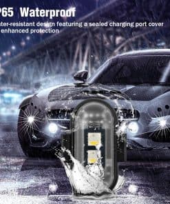 Resistente al agua: Nuestra luz estroboscópica para drones está hecha de material resistente al agua con grado de protección IP65 y viene con un tapón impermeable para proteger el puerto de carga.