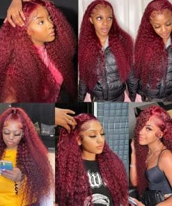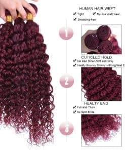 Color de Mechones de Cabello Humano: Mechones de Cabello Ondulado de Agua 99J Rojo Vino, Pueden ser Alisados, Permanentes, Rizados, Teñidos y Decolorados.