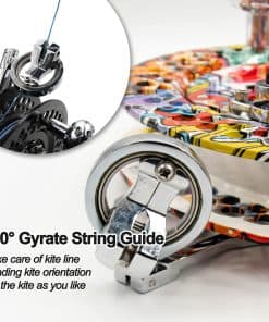 1. Carrete de cometa profesional de gran tamaño: El carrete de 11 pulgadas es suficiente para soportar cometas de línea única grandes, fácil para que los adultos y profesionales lo sostengan y operen. Equipamos una correa adecuada para que reduzca la carga de volar cometas gigantes. 2. Aleación de aluminio resistente: 100% de aleación de aluminio, duradero y resistente a golpes. Incluso ante vientos fuertes, puede sostener su cometa firmemente. Nuestro carrete de cometas logra el equilibrio perfecto entre solidez y ligereza. 3. Rotación suave: Hay rodamientos de bolas de acero inoxidable de alta calidad en la ranura interna del carrete, que es la clave de la alta velocidad y rotación suave, ¡ayuda a que la cometa vuele alto rápidamente! Por supuesto, no tiene que preocuparse por el óxido. 4. Guía de línea: La guía de cuerda giratoria de 360 grados puede guiar la orientación de la línea de cometa y evitar eficazmente enredos; los puntos de contacto suaves reducen en gran medida la fricción con la línea, para que la cuerda de la cometa pueda soltarse de manera más suave y rápida. 5. Herramienta de control de vuelo de cometa Kite wheel: dispositivo de asa de aleación de magnesio negro dorado, accesorios de playa al aire libre para cometas grandes, carrete de pesca para niños, bobinador de línea, cometa de papel gigante, cometa pulpo, piezas de caja delta de cometa, regalo