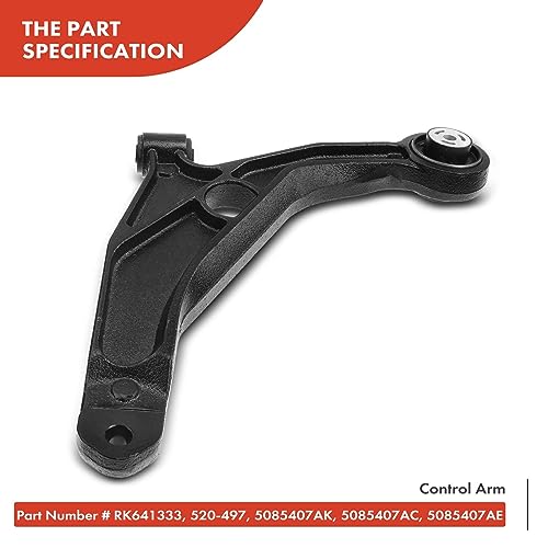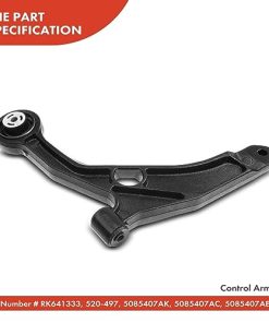 1. Compatibilidad con Vehículos: Compatible con Chrysler 200 2011-2014, Sebring 2007-2010, y Dodge Avenger 2008-2014. 2. Posición de Instalación: Inferior Delantero Lado del Conductor Izquierdo. 3. Reemplazo Ideal: Este ensamblaje de brazo de control es un reemplazo para el sistema de suspensión de los modelos mencionados, y puede ayudarlo a resolver problemas como ruidos fuertes, desviación de dirección, desgaste irregular de llantas, y vibración excesiva. 4. Especificaciones: Condición: Nuevo; Material: Acero; Buje del Brazo de Control Incluido: Sí; Junta de Articulación Incluida: No; Pre-Engrasado: No; Accesorios Incluidos: Como se Muestra en la Imagen; Garantía: 1 Año. 5. Número de Pieza de Referencia: RK641333, 520-497, 5085407AK, 5085407AC, 5085407AE