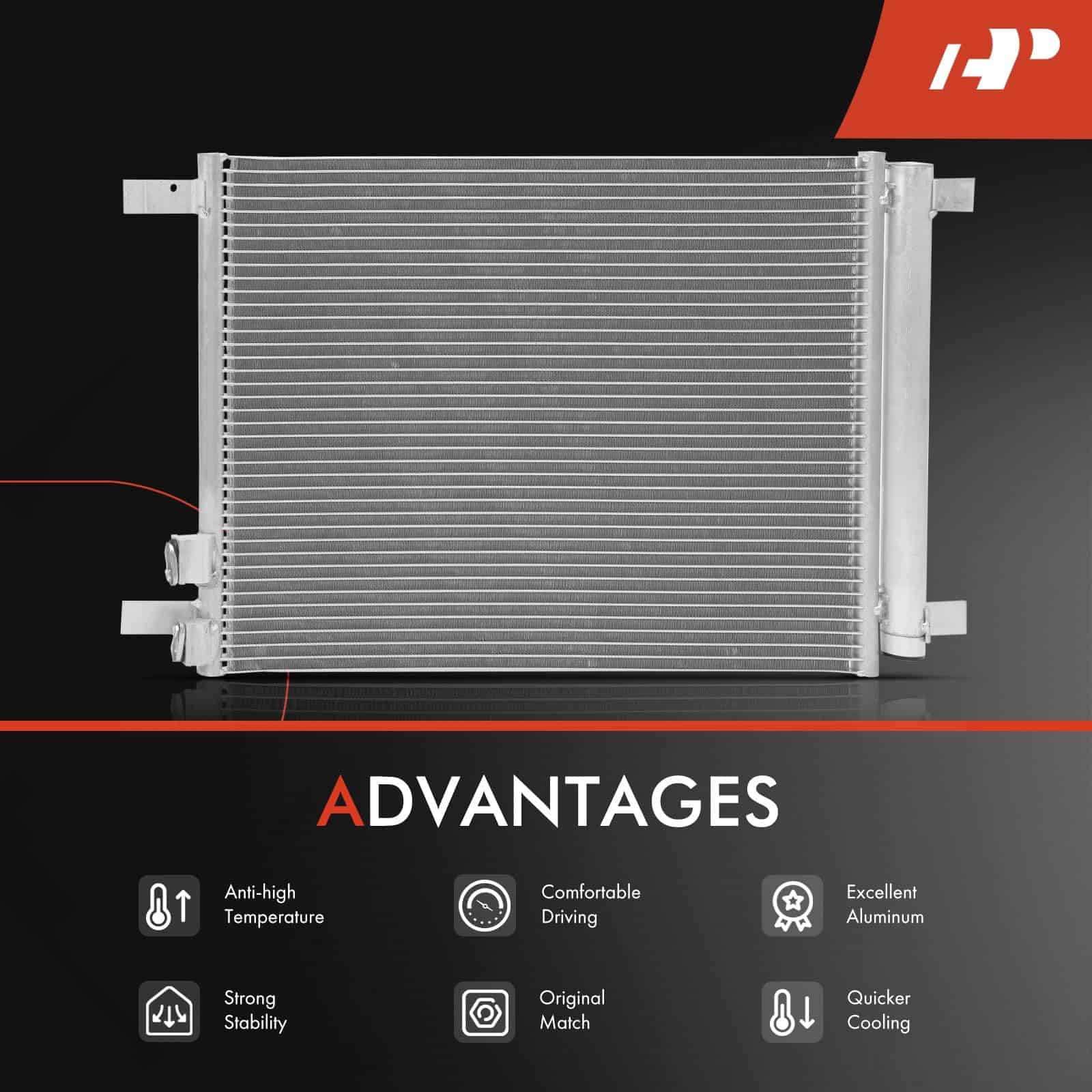 El Condensador de Aire Acondicionado A/C A-Premium es un artículo totalmente nuevo que se instala directamente como reemplazo del original. Compatible con Audi A3 2015-2016 L4 1.8L/L4 2.0L, A3 2017-2020 L4 2.0L, A3 Quattro 2015-2020 L4 2.0L, A3 Sportback e-tron 2016-2018 L4 1.4L, Q3 2019-2020 L4 2.0L, S3 2015-2020 L4 2.0L, TT Quattro/TTS Quattro 2016-2018 L4 2.0L, Volkswagen Golf R 2015-2019 L4 2.0L. Viene con soporte y receptor secante para una máxima eficiencia de enfriamiento y disipación de calor acelerada. Incluye garantía ilimitada de 1 año. Por favor, verifique la compatibilidad antes de realizar la compra.
