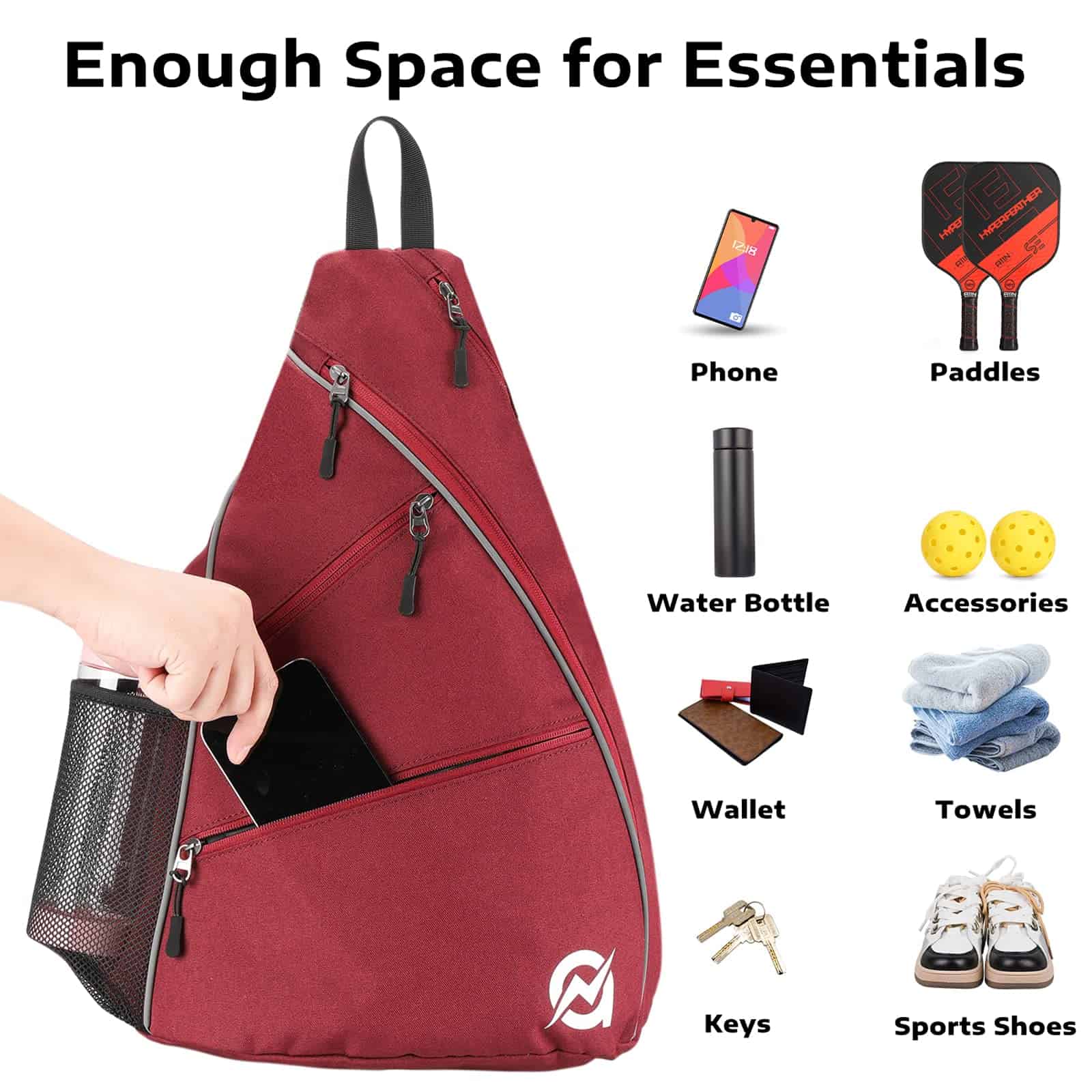 2. Espacioso para almacenar: Diseñado con cuatro bolsillos más portabotellas, esta bolsa de pickleball es espaciosa para guardar todos tus elementos esenciales, incluyendo palas, pelotas, teléfono, llaves, toallas, botella de agua, etc.
