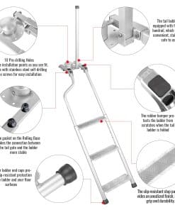 1. Resistente y robusto: La nueva versión mejorada del rack de escalera con amplios pedales y pasamanos, fabricado en aluminio de alta calidad con proceso de oxidación superficial. Almohadillas antideslizantes profesionales en la parte inferior hacen que la escalera sea más estable y protegen el suelo del desgaste.