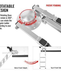 2. DIRECCIÓN AJUSTABLE: La escalera para portón trasero AA adopta una base omnidireccional y la conexión de tubo redondo permite no solo ser giratoria en dirección horizontal, sino también en dirección vertical para satisfacer todos los requisitos de uso.