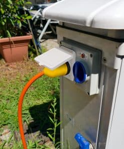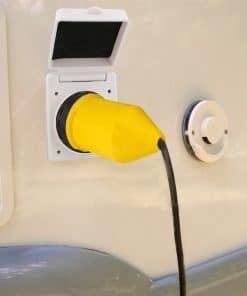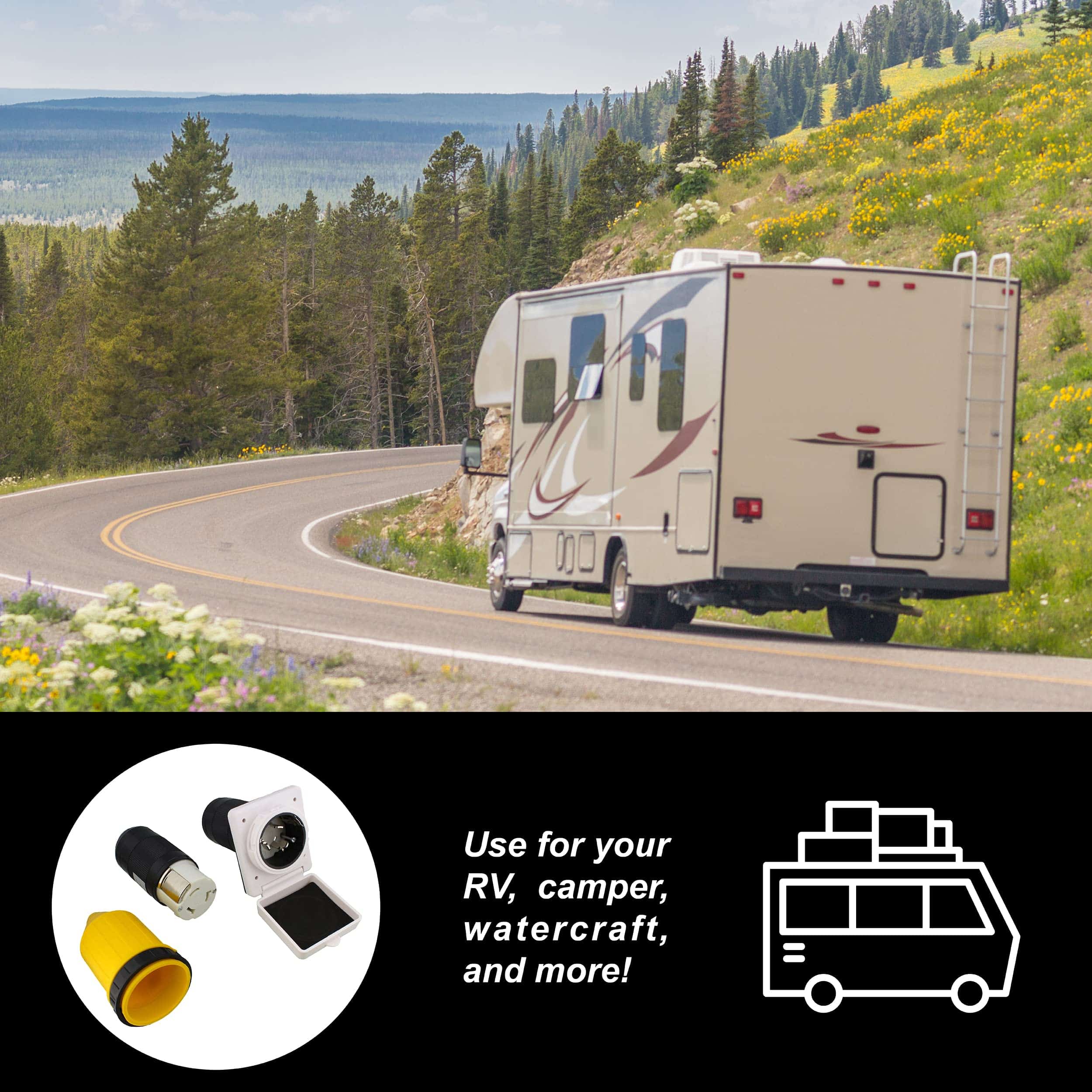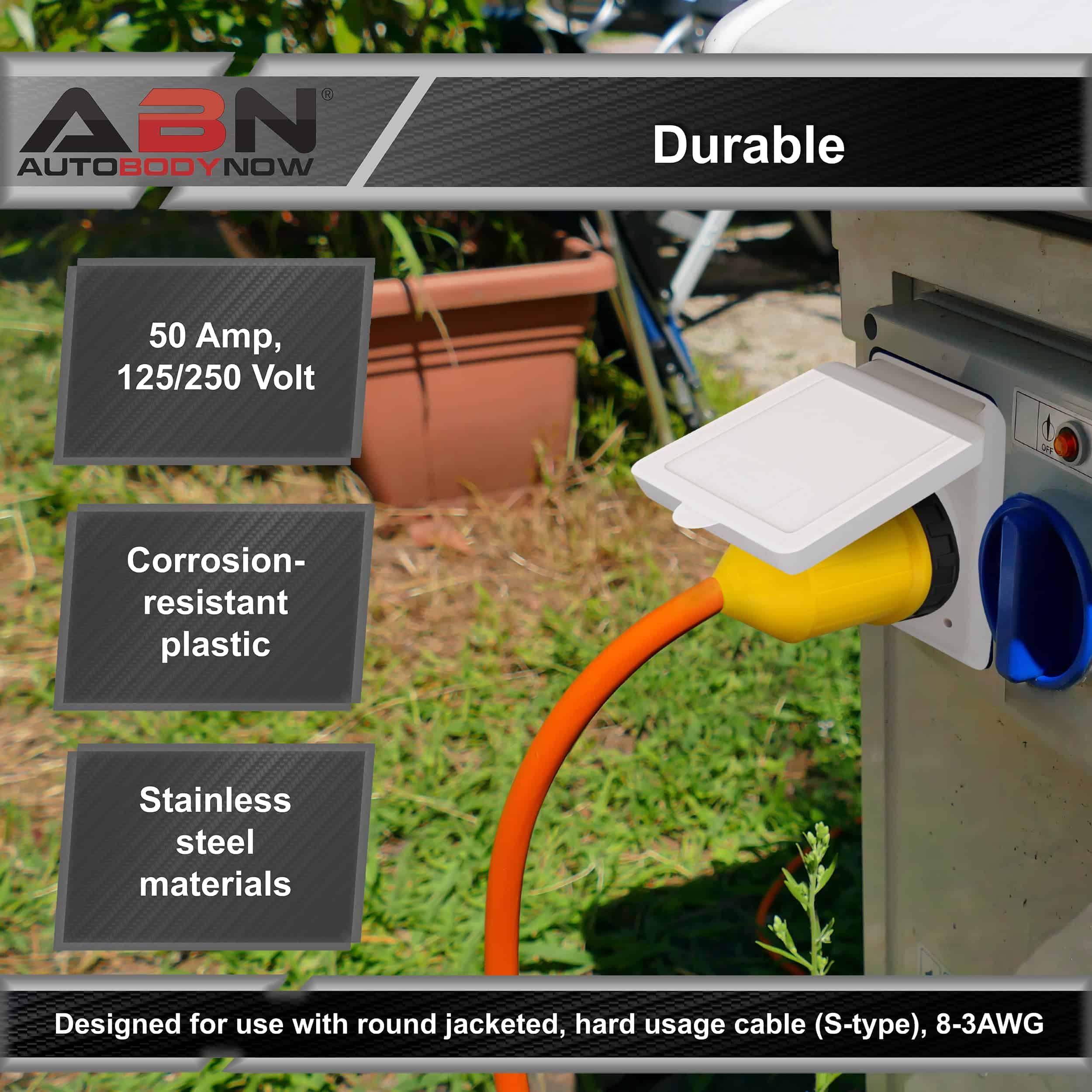 La caja de entrada de generador de 50 amperios de ABN es perfecta para usar al aire libre en su remolque de RV Camper. Esta caja de entrada de corriente marina de 125/250V incluye una toma de corriente marina de acero inoxidable con cubierta de empaque, una cubierta protectora del enchufe y un anillo. Se recomienda su uso con cable tipo S con revestimiento redondo de 8-3AWG. El receptáculo macho de 50 amperios de 125/250 voltios permite bloquear su cordón al receptáculo con la cubierta de agarre fácil. Con un conector de 2 pulgadas de frente y capacidad para cuerdas de hasta 0.25 pulgadas de grosor, esta caja de entrada tiene una entrada interna de 2.2 pulgadas y un tamaño externo de 3×3.5×5.75 pulgadas. La cubierta y el anillo internos miden 2.4×3.5 pulgadas, y los externos 3×5.25 pulgadas. Construido con acero inoxidable y plástico de alta calidad, este producto garantiza durabilidad y confiabilidad. ¡Instálalo fácilmente con instrucciones sencillas y herramientas comunes!