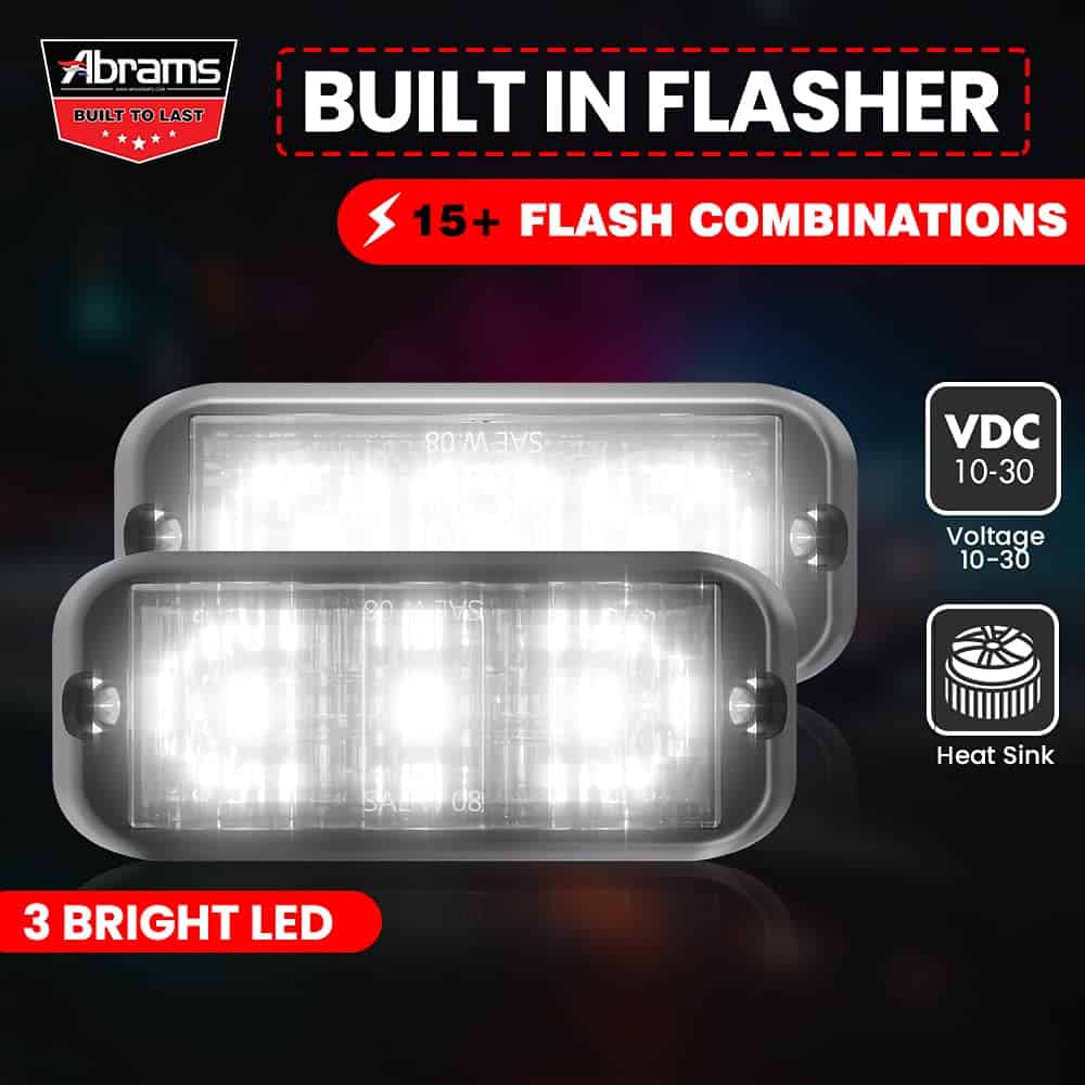 Este Abrams SAE Clase-1 Serie Edge 3 [Rojo] 9W – 3 LED Luz de Rejilla de Vehículo de Bomberos Voluntarios POV Montada en la Superficie de Luz de Advertencia Estroboscópica es perfecto para aquellos que buscan una luz de advertencia de alta calidad para su vehículo. Con certificaciones SAE J595 Clase 1 y SAE J578 para Ámbar, Azul, Rojo y Blanco, cumple con los estándares de iluminación de emergencia más estrictos. Equipada con 3 LEDs de 3 vatios de 5ª Generación y un excelente sistema de gestión de disipación de calor, esta luz ofrece una larga vida útil y un rendimiento confiable. El flasher incorporado ofrece más de 15 combinaciones de flash seleccionables y es sincronizable entre múltiples unidades, lo que permite una configuración personalizada. Totalmente impermeable y resistente a la corrosión, esta luz se puede montar en casi cualquier lugar, ya sea en un parachoques o en una superficie plana. La brida negra, la junta acolchada y el manual de instalación incluido facilitan la instalación. Con una garantía sin problemas de 5 años y soporte al cliente de por vida, esta luz estroboscópica es una excelente opción para cualquier persona en busca de una opción duradera y confiable para su vehículo.