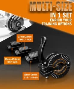 1. CONFIGURACIÓN ÚNICA: Diga adiós a un solo tamaño, el innovador diseño de las abrazaderas de barra MAXRICH está equipado con inserciones de varios tamaños, que se pueden instalar o quitar fácilmente, y solo se puede utilizar 1 abrazadera de barra para todos los tamaños de barras de barra dentro de 23-30 mm. Sin tener que preocuparse por el tamaño. 2. MANTENGA EL PESO: Mango del pistón de la barra de peso, rechace estar demasiado suelto o demasiado apretado, gire el mango para ajustar el tamaño, adecuado para barras de barra de 1 pulgada (23 mm, 24 mm, 25 mm), 27 mm, 28 mm o 30 mm. Barra de barra roscada y recta. Equipado con insertos de TPR, textura antideslizante en el interior, doble protección que brinda un agarre fuerte, capacidad de carga de más de 400 lb, antideslizante, bloqueo de seguridad de peso. 3. ENTRENAMIENTO EFICIENTE: El mecanismo de liberación rápida del collar de la barra se puede liberar presionando ligeramente un botón, lo que puede ahorrar tiempo en el cambio de peso y permitirle concentrarse más en el levantamiento de peso. 4. CALIDAD DE ALTA GAMA: nylon resistente de alta resistencia + goma TPR suave, la combinación complementaria de suave y duro, los clips de peso para barras el cuerpo exterior de nylon es tan duro como la piedra, resistente a caídas, resistente al desgaste, el rebote rápido especial de goma TPR suave puede soportar una fuerte presión y no es fácil de deformar, calidad de grado comercial para garantizar su seguridad deportiva. 5. LISTA DE EMPAQUE: 2 abrazaderas de peso + 4 insertos de 1 pulgada + 4 insertos de 28 mm + 4 insertos de 30 mm Las abrazaderas de gimnasio MAXRICH lo ayudarán a ejercitarse de una forma más perfecta. El diseño innovador bloquea firmemente el peso sin perderlo. ¡Pruébalo y te sorprenderás gratamente!