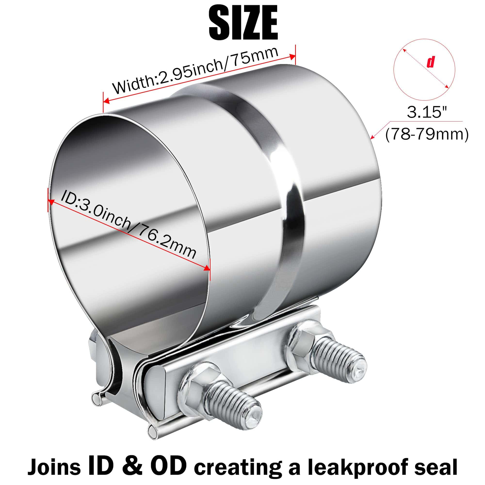 Abrazadera de escape TERMUX de 3.0 pulgadas, abrazadera de