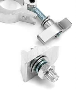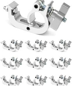 La Abrazadera de Luz de Escenario QWORK es un accesorio imprescindible para cualquier evento de iluminación. Esta abrazadera está hecha de una aleación de aluminio de alta calidad con pasadores sólidos que la hacen resistente al óxido y duradera de usar. Con una capacidad de carga de 150kg / 330lb, es adecuada para tamaños de 48-51 mm / 1.89-2 pulgadas, lo que la hace ideal para su uso en trusses. Los dientes antideslizantes de precisión están diseñados para proporcionar una mayor estabilidad y firmeza tanto para suspensiones horizontales como verticales. La instalación es sencilla con la perilla ajustable que se adapta a la mayoría de los accesorios, lo que le permite retirar o reposicionar sus luces de forma rápida y fácil. Esta abrazadera es perfecta para la iluminación de escenarios, paquetes de luces para dj y la mayoría de las luces de fiesta. ¡No pierda la oportunidad de adquirir este set de 10 abrazaderas de luz de escenario para llevar su experiencia de iluminación al siguiente nivel!